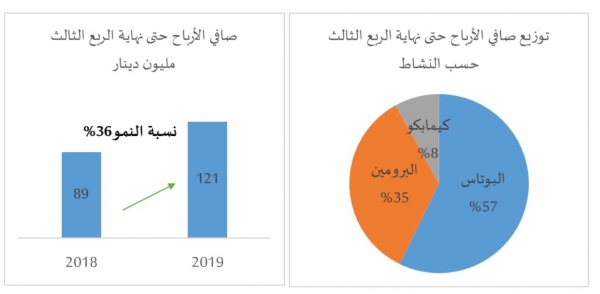 121 مليون أرباح صافية بعد الضرائب والمخصصات ورسوم التعدينحتى نهاية الربع الثالث من العام 2019
