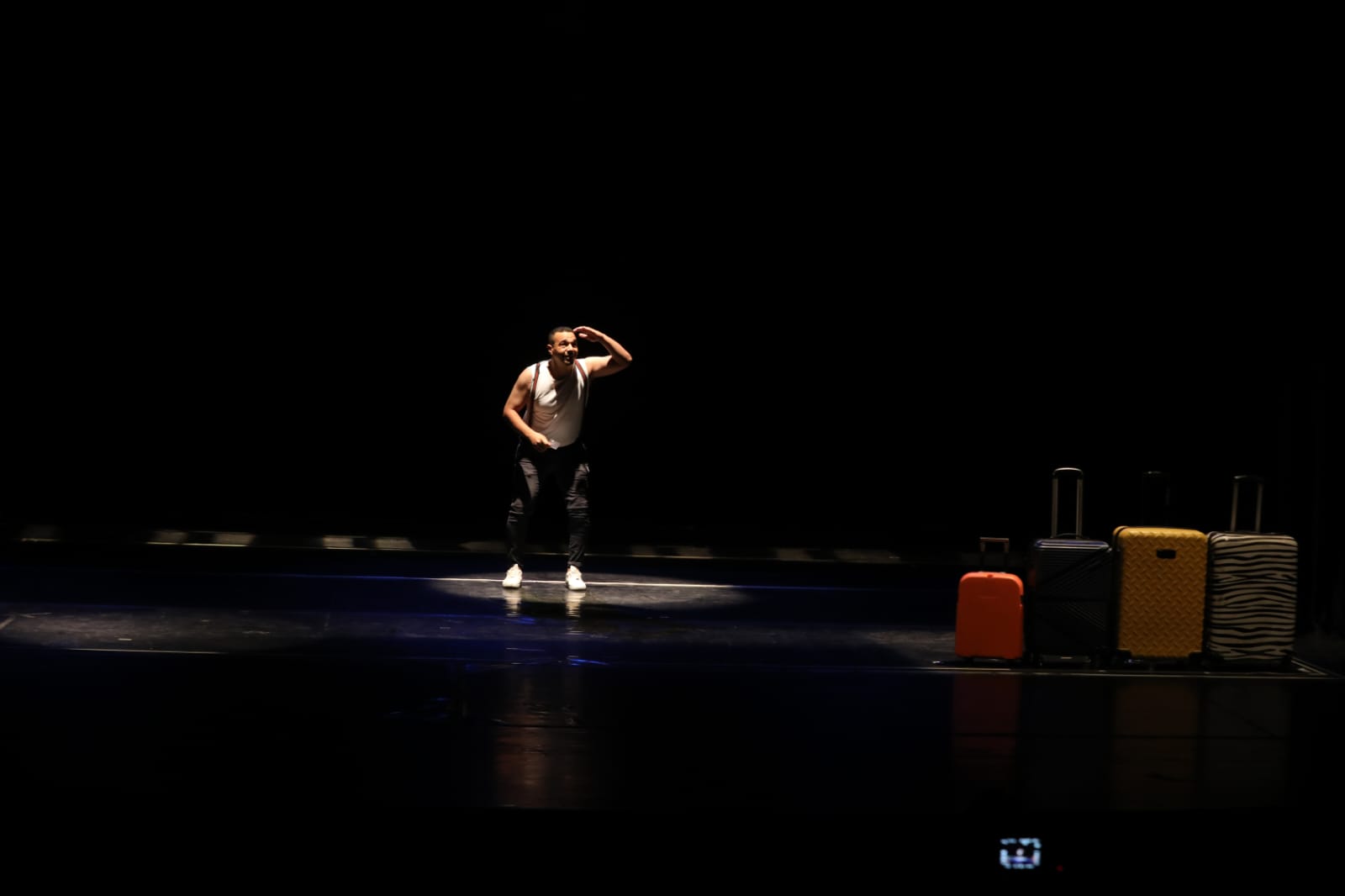 وفي إطار مونودرامي متماسك، يقف "الممثل – المسافر" ليحمل حقائبه المادية والرمزية، باحثًا عن إجابة لسؤال وجودي يتردد طيلة العرض: "إلى أين؟". فالمسرحية لا تكتفي بعرض مشهد فردي عن الرحيل، بل تحوّله إلى سؤال جماعي يمسّ كل من اضطر أن يغادر، أن يهاجر، أن يُهجّر، أو أن يرحل مجبرًا من وطن بات غير قابل للسكن، بفعل الحروب والدمار والنكبات المتتالية، وحتى الإحتلال في العالم العربي.