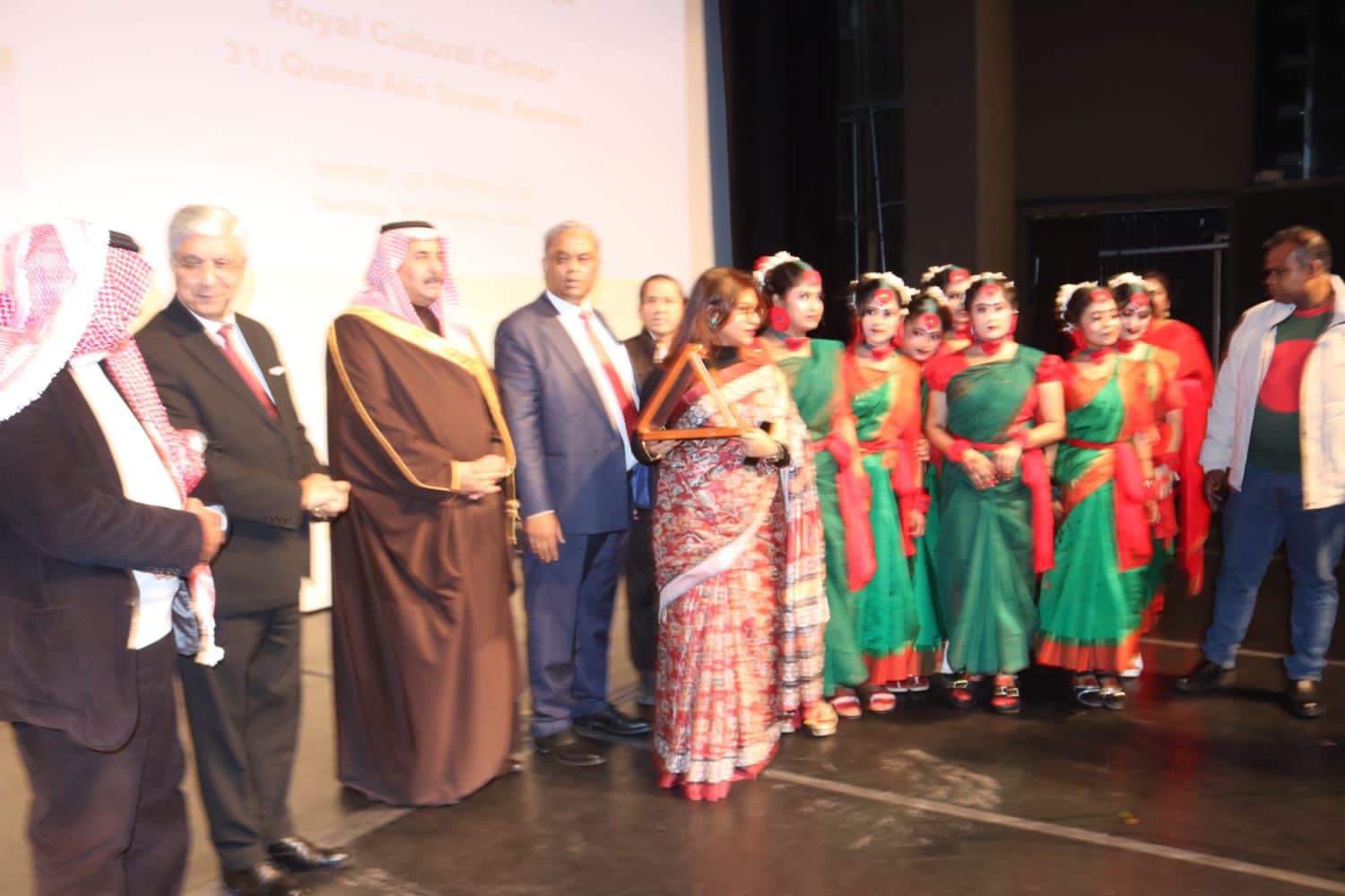 وتخلل الاحتفال أغان وطنية وشعبية اردنية وبنغلادشية،