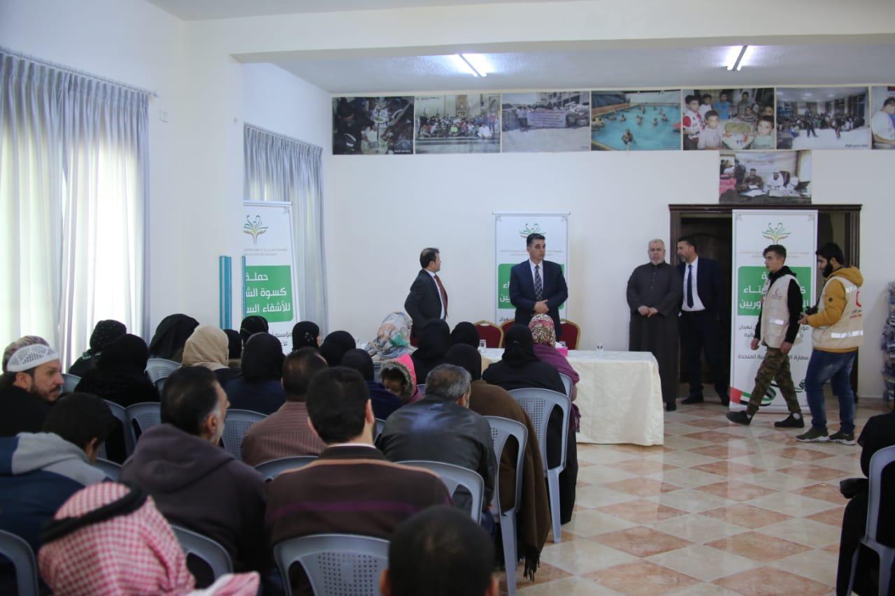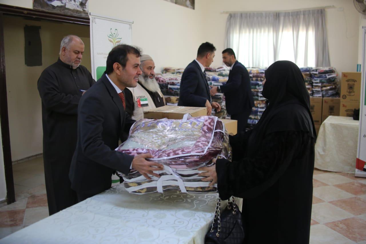 وقام المستشار بسفارة الدولة بعمّان فيصل أحمد آل مالك اليوم الإثنين بتوزيع بطانيات وملابس ولوازم شتوية على مستحقيها من اللاجئين السوريين بالأردن، ضمن الحملة التي تنفذها المؤسسة بالأردن وذلك بمقر الجمعية الأردنية لرعاية وتأهيل الأيتام والفقراء شرقي العاصمة عمّان.
