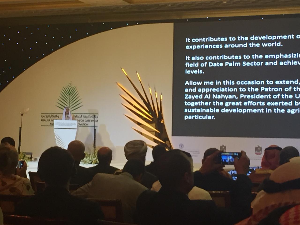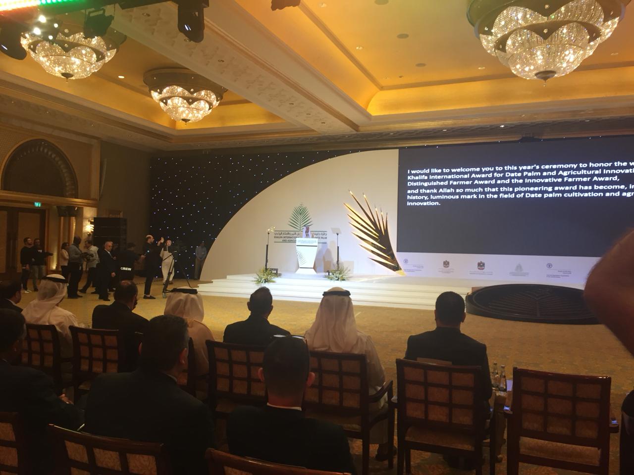 في اطار مشاركة معالي وزير الزراعة ووزير البيئة المهندس ابراهيم الشحاحدة في حفل توزيع جوائز الدورة (١١) لعام ٢٠١٩ لجائزة خليفة الدولية والإبتكار .