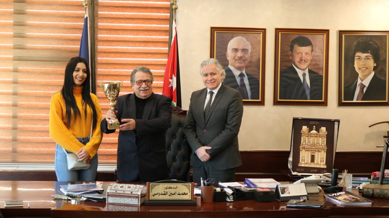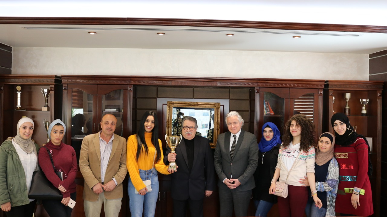 القدومي يكرم فريق كرة الطائرة طالبات كلية الخوارزمي