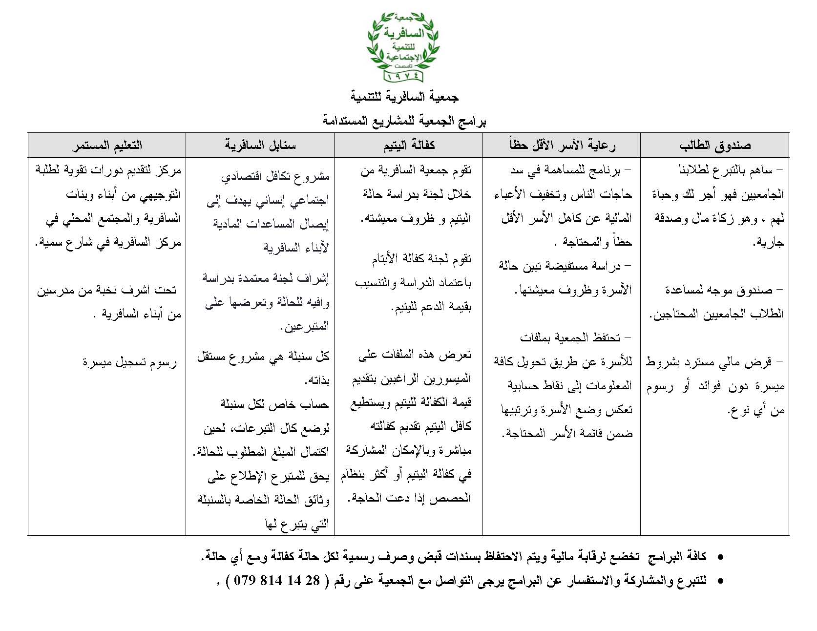 ومن الجدير بالذكر أن الجمعية قامت بعمل صناديق أخرى من خلال لجنة التكافل الاجتماعي مثل صندوق الطالب وسنابل السافرية ورعاية الأسر الأقل حظاً والتعليم المستمر.