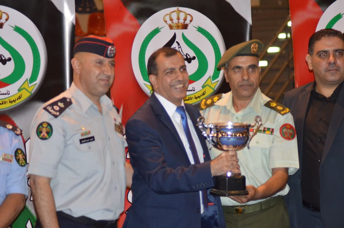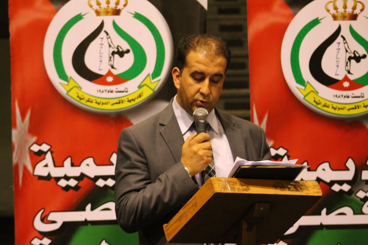 اختتم الحفل الوطني التي تنظمه #اكاديمية_الاقصى_الدولية_للكراتيه وحضر مندوبا عن عطوفة العميد جهاد القطيشات المقدم فراس البطاينه وبحضور المقدم محمود الشرمان من مديرية الدفاع المدني والمقدم ميلاد وريكات من مديدية قوات الدرك والرائد عيسى العدوان من مديرية الامن العام و المدير العام لاكاديمية الاقصى للكراتيه ايمن القرالة والدكتور فريد الخطيب وعطوفة زيدون الفاعوري حيث قدم الحفل الشاعر الاردني لؤي شديفات حيث بدء الحفل بالسلام الملكي وايات من القران الكريم و قامت موسيقات الامن العام بعزف وعرض موسيقي وطني وقاموا لاعبين الاكاديمية الاقصى بعرض في السيجال والكاتا والقتال المقيد حيث اعجب البطاينة بالتنظيم الضخم للحفل الوطني بمناسبة عيد الاستقلال وعيد الجيش ومرور عشرون عاما على تولي جلالة الملك عبدالله الثاني ابن الحسين المعظم سلطاته الدستورية وشكر البطاينة الكابتن يعقوب الوعري المدير التنفيذي لأكاديمية الاقصى للكراتيه لتنظيم الرائع وادارة المهرجانات الوطنية على مستوى عالي من ناحية التنظيم والاشراف والتنفيذ قام البطاينة في نهاية الحفل بتسليم الاحزمة الملونة للاعبين الذين خضعو للفحص لكل من لاعبين اكاديمية الاقصى فرع عمان و اكاديمية صقور الجنوب فرع الكرك و اكاديمية الصدارة فرع الكرك وايضا تم تكريم الطلبة المتفوقين دراسيا الذين حصولو على معدل فوق 90% للعام الدراسي الماضي وقام البطاينة بتكريم كل الجهات الحكومية والرسمية للذين ساهموا في نجاح هذا الحفل الوطني بالدروع التقديرية وقام الكابتن ايمن القرالة بتقديم درع اكاديمية الاقصى للكراتيه الى راعي الحفل وتم تكريم الكابتن يعقوب الوعري بكأس التنظيم المثالي لافضل احتفال وطني لعام 2019