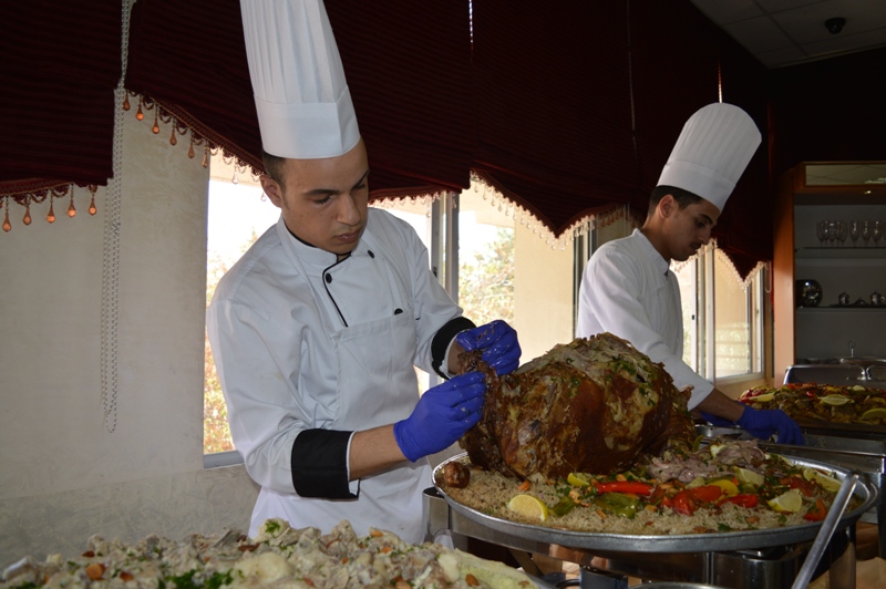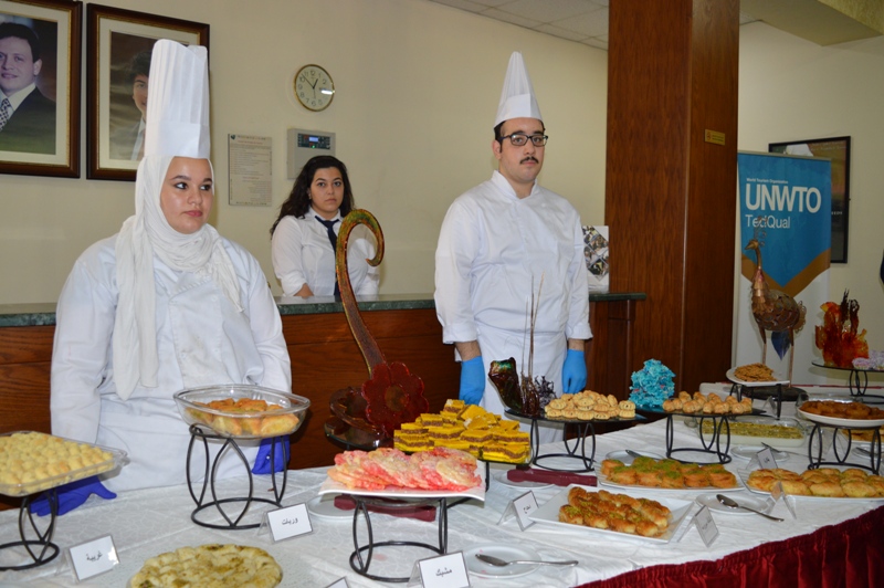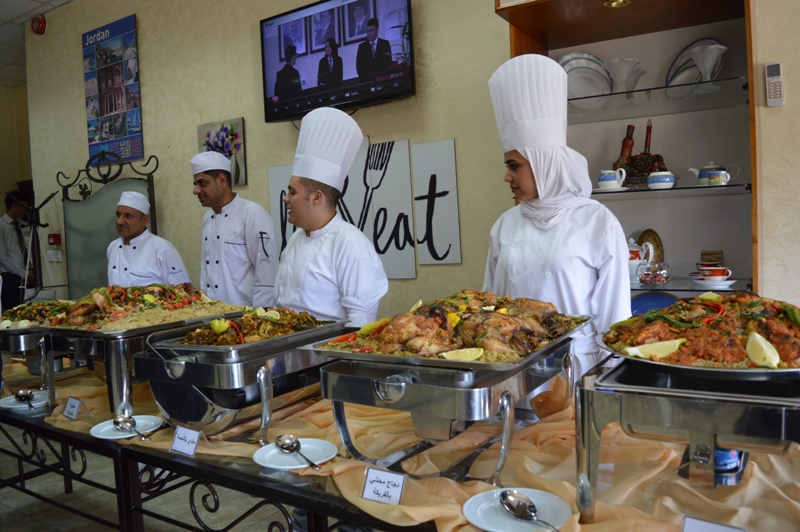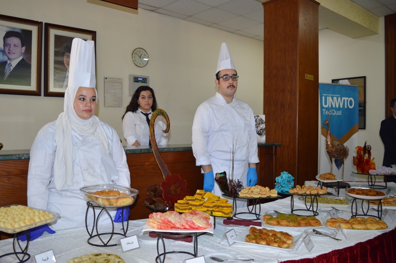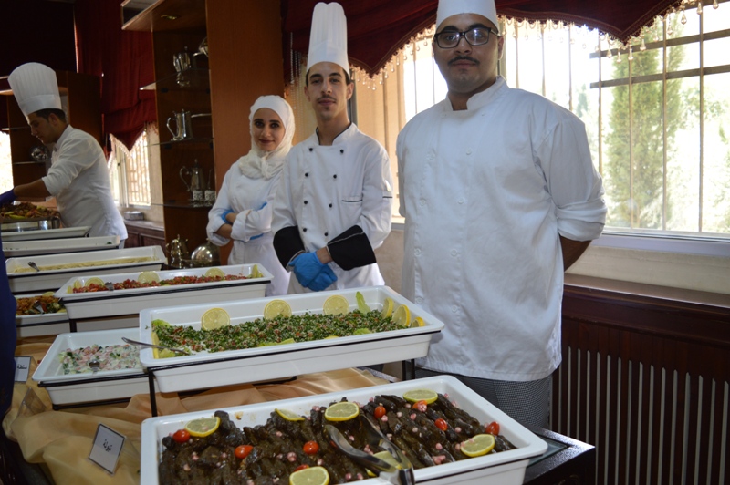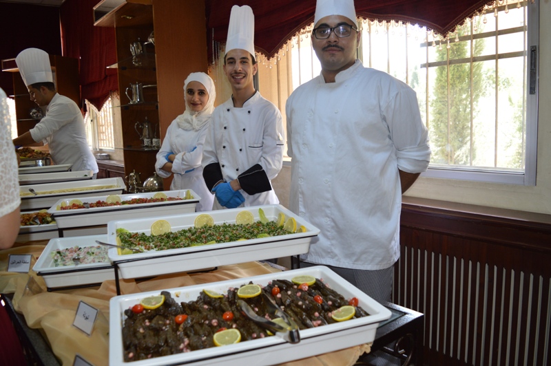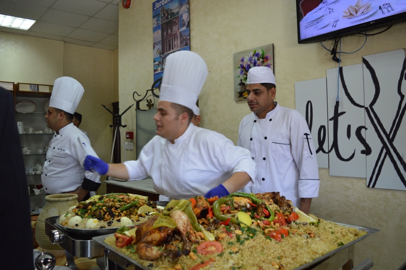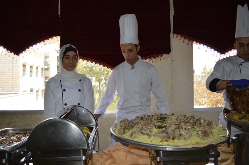 Jordanian Cuisine: Traditional and Modern ، اليوم الاربعاء الموافق 28/8/2019، والذي تم اصداره باللغة الانجليزية وذلك لتكرار الطلب على الكتاب من ضيوف الاردن. وقد حضر الحفل ممثلي القطاع السياحي والفندقي والمطاعم وجمعية المطاعم الأردنية، وجمعية الفنادق الأردنية وهيئة تنشيط السياحة، والاسواق الحرة الاردنية وجمعية الطهاة الاردنية، ونخبة من سيدات ورجال المجتمع المحلي حيث قام عميد الكلية الدكتور محسن مخامرة في بداية الحفل بالقاء كلمة ترحيبية وعرض برامج الكلية المختلفة لدرجة البكالوريوس والدبلوم والدورات التدريبية ونشاطات الكلية، ثم تم دعوة راعي الحفل وسعادة المهندس نديم المعشر نائب رئيس مجلس الامناء ورئيس هيئة المديرين وعميد الكلية لتوقيع الكتاب. ومن ثم تم دعوتهم لتقطيع الكعكة التي اعدت على شكل كتاب المطبخ الاردني.