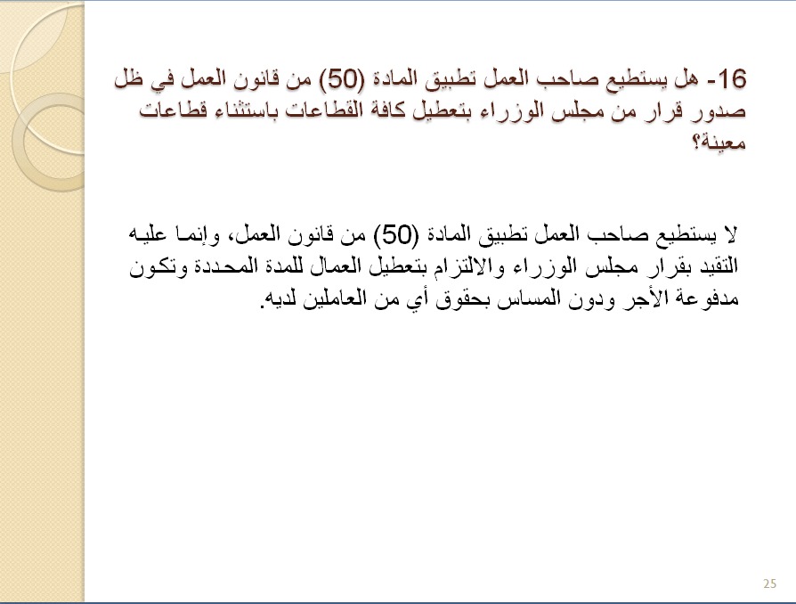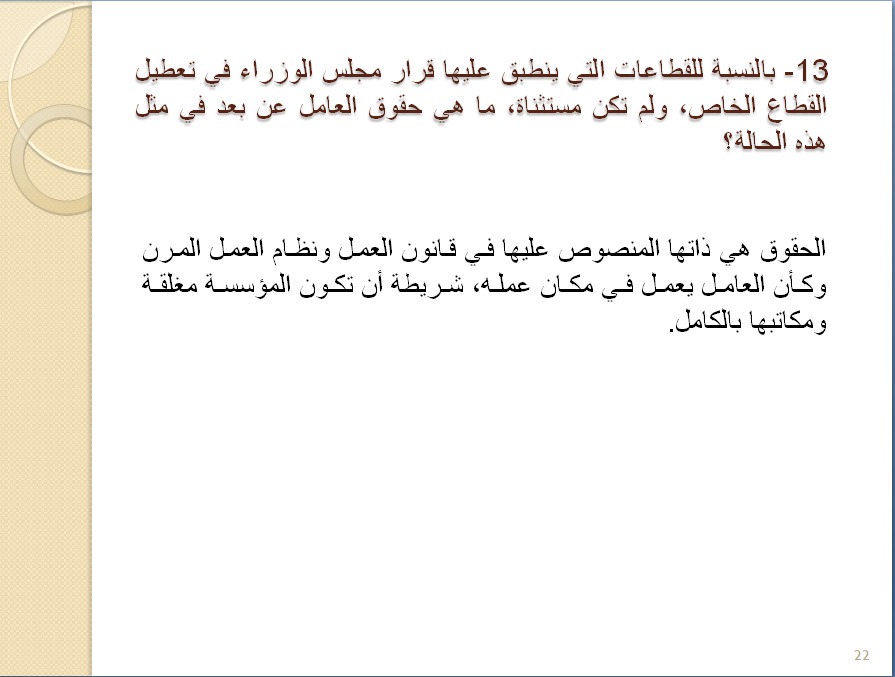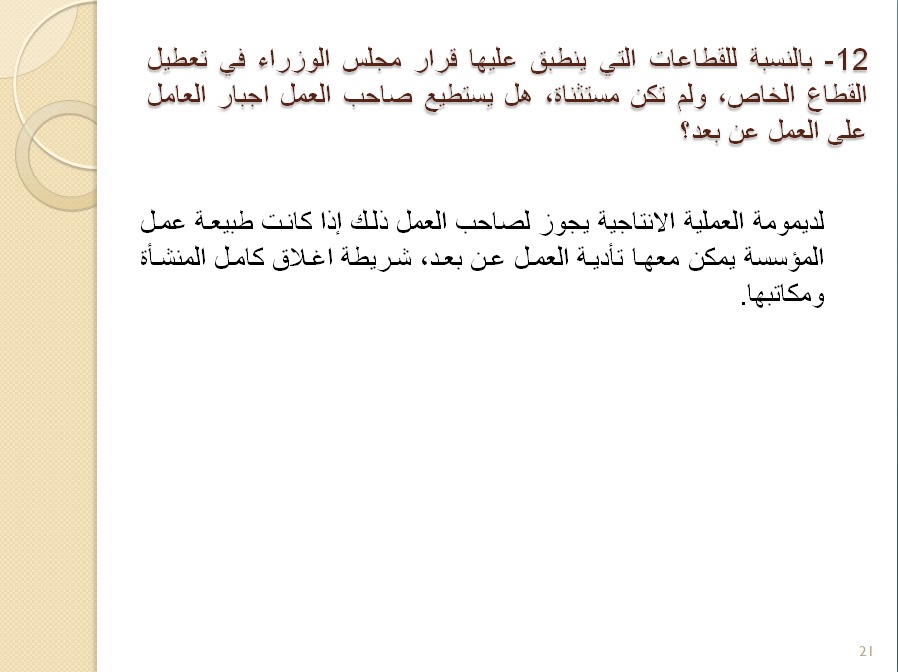 وزارة العمل تصدر دليل سؤال وجواب، لتوضيح كل ما يتعلق بالعامل وصاحب العمل بالإضافة إلى موظفي القطاع العام من حيث الحقوق والواجبات خلال الظروف الاستثنائية الراهنة