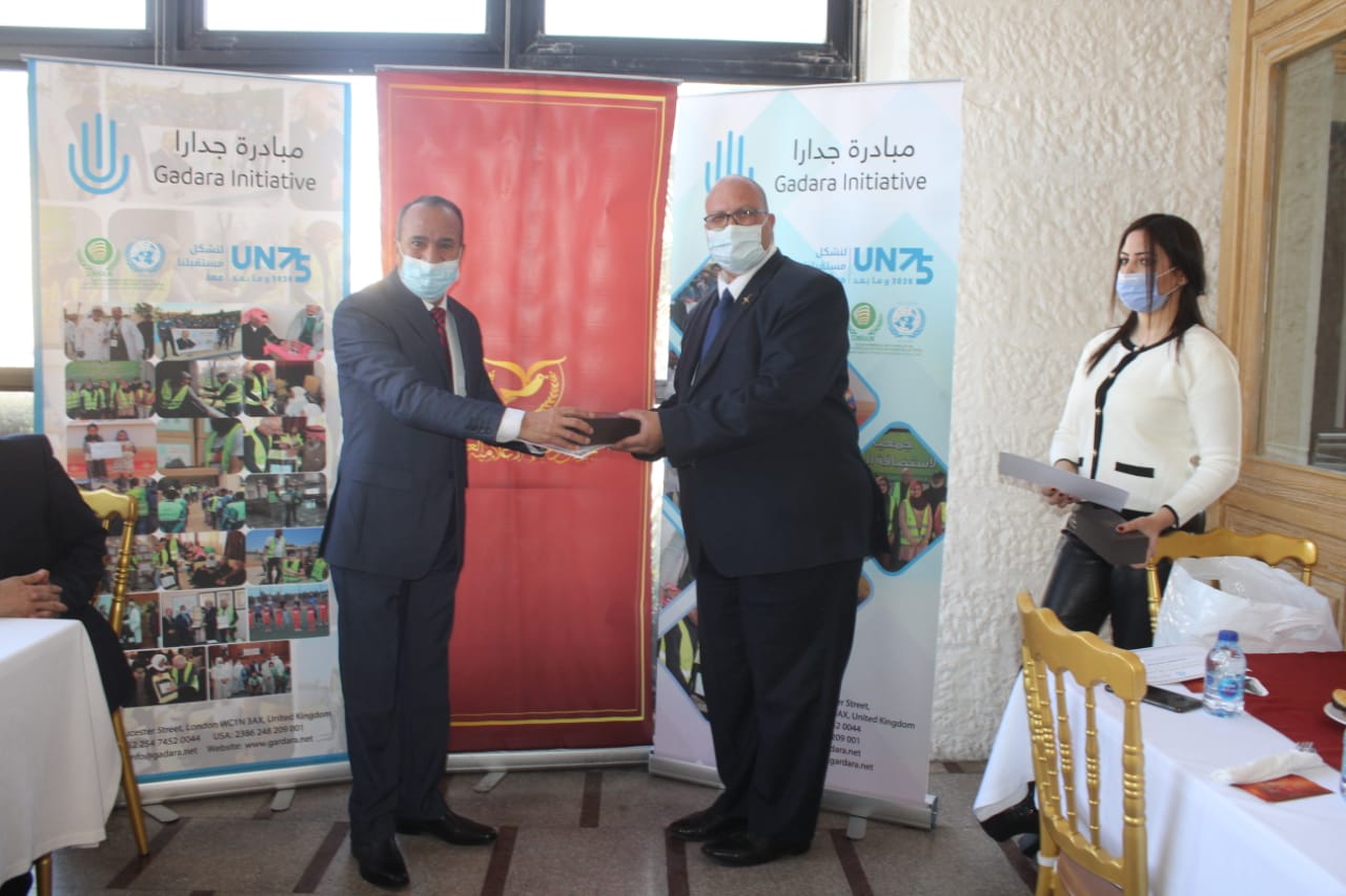 بحضور نخبة من الزملاء الصحفيين رحب الامين العام المؤسس لمجلس الوحدة الاعلامية العربية بالنيابة عن سعادة السفير فرج العمري مؤسس مبادرة جدار بالحضور الكريم وقال يوسف اننا اليوم نعلن عن شراكة استراتيجية مع مبادرة جدارا التي عرفتوها من خلال نشركم للعديد من الأنشطة الاجتماعية والإنسانية المحلية والعربية.واكد يوسف انه سعيد بهذا الحضور رغم الظروف الصحية والتي تتطلب منا جميعا الإلتزام بأوامر الدفاع