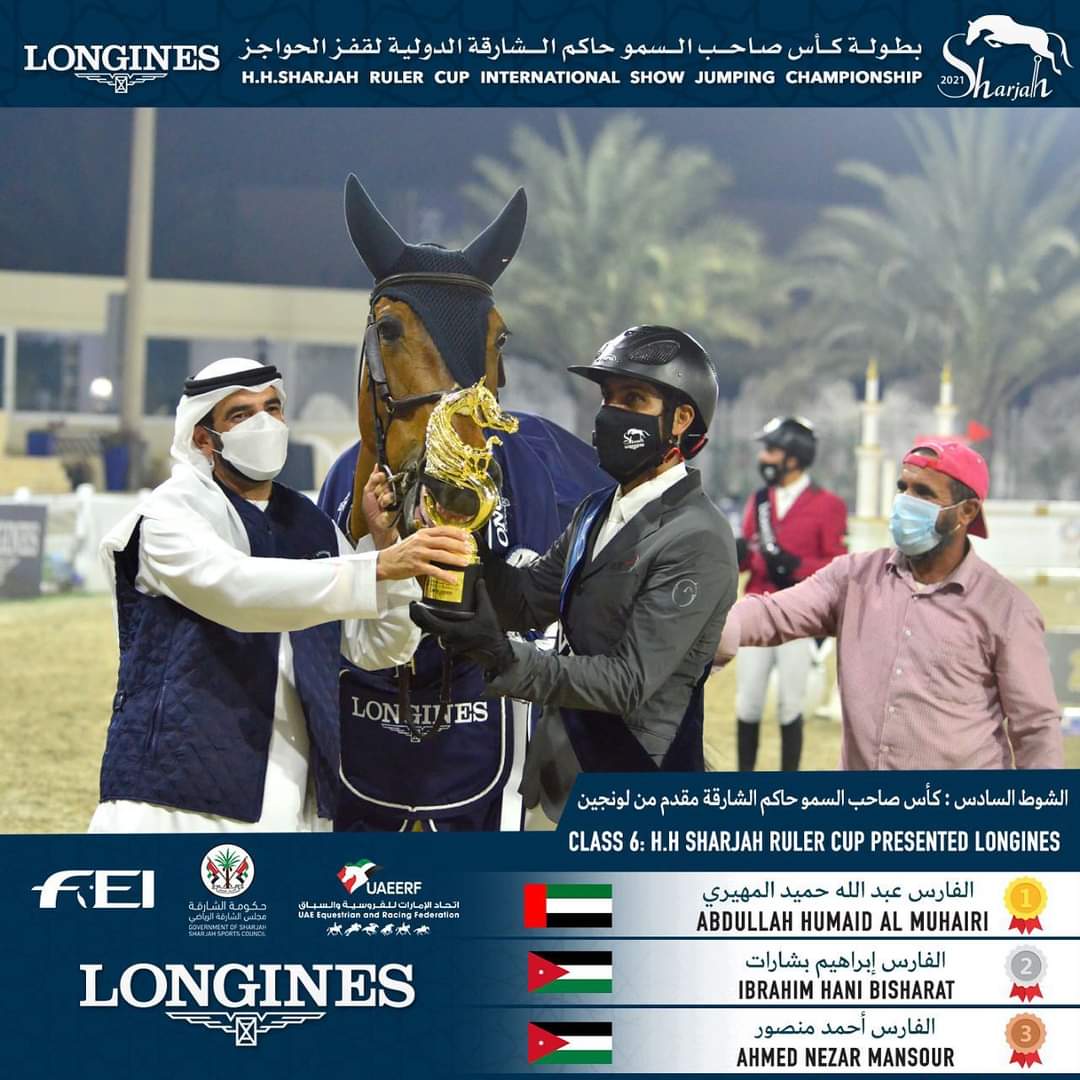 وبطولة الشارقة الدولية الحادية والعشرون لقفز الحواجز من فئة النجمتين، والتي ينظمها نادي الشارقة للفروسية والسباق بالتعاون مع اتحاد الإمارات للفروسية وبإشراف الاتحاد الدولي للفروسية، وبرعاية شركة لونجين الراعي الرسمي للبطولة ومجلس الشارقة الرياضي والعديد من الجهات والشركات الحكومية والخاصة.