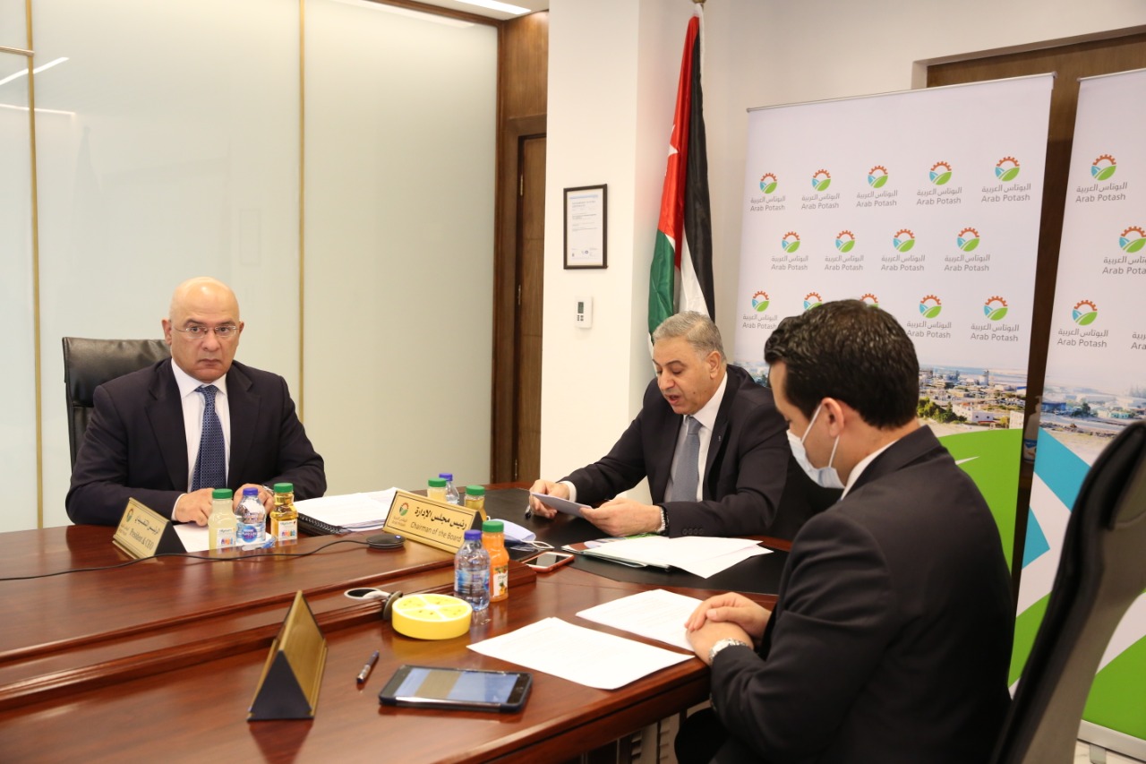 وتطرق الدكتور النسور، إلى عدد من القرارات الجوهرية التي اتخذتها الإدارة التنفيذية للشركة خلال جائحة كورونا والتي كان من أبرزها الاستمرار في عمليات الإنتاج والبيع والنقل والتصدير بوتائر عالية خلال فترة الحظر، وباستخدام ما يقارب (35%) من القوى العاملة وذلك بعد الحصول على الموافقات اللازمة من المؤسسات الحكومية الأردنية المعنية، الذي كان له دور رئيسي في تحقيق الشركة لهذه النتائج المتميزة، حيث سعت الإدارة إلى الوفاء بالتزاماتها وتنفيذ عقودها المبرمة مع المشترين لمادة البوتاس الأردني من خلال ضمان استمرار عمليتي الإنتاج والتصدير. وعلى صعيد تطوير منتجات الشركة، كان لقرار الإدارة التنفيذية المتمثل بإنتاج مواد ذات عوائد ربحية أعلى مثل البوتاس الحُبيبي الأحمر والدخول بفضل هذا المنتج لأسواق جديدة مثل البرازيل وأستراليا وفيتنام والولايات المتحدة الأمريكية، دوراً فاعلاً أسهم في تخفيف أثر الانخفاض الحاد في أسعار بيع البوتاس العالمية في العام الماضي،