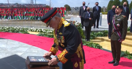 جاء ذلك خلال زيارة الملك وولي العد الأمير الحسين بن عبدالله اليوم الأحد الى صرح الشهيد.