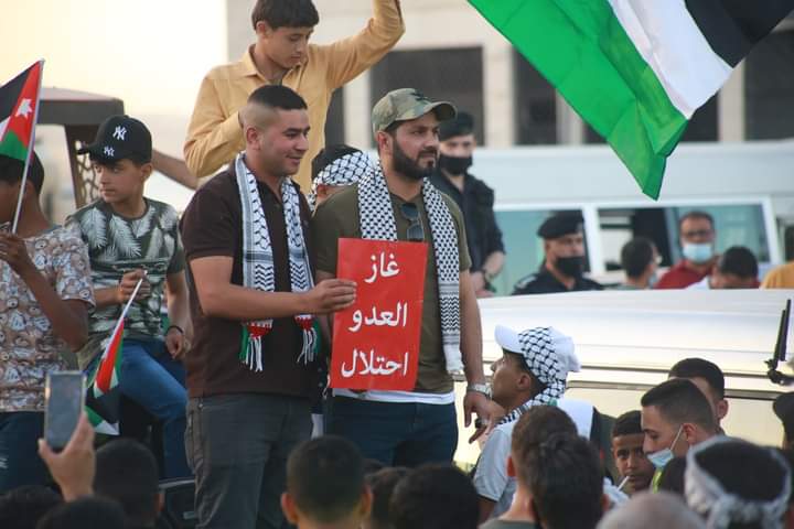 و رفع المحتجون لافتات كتب عليها عبارات تدين العدوان على غزة، و الوصايا الهاشمية للحفاظ على الممتلكات الدينية في الأقصى الشريف ، كما رفع المحتجون علم دولة فلسطين ورددوا هتافات تؤيد النضال الفلسطيني.