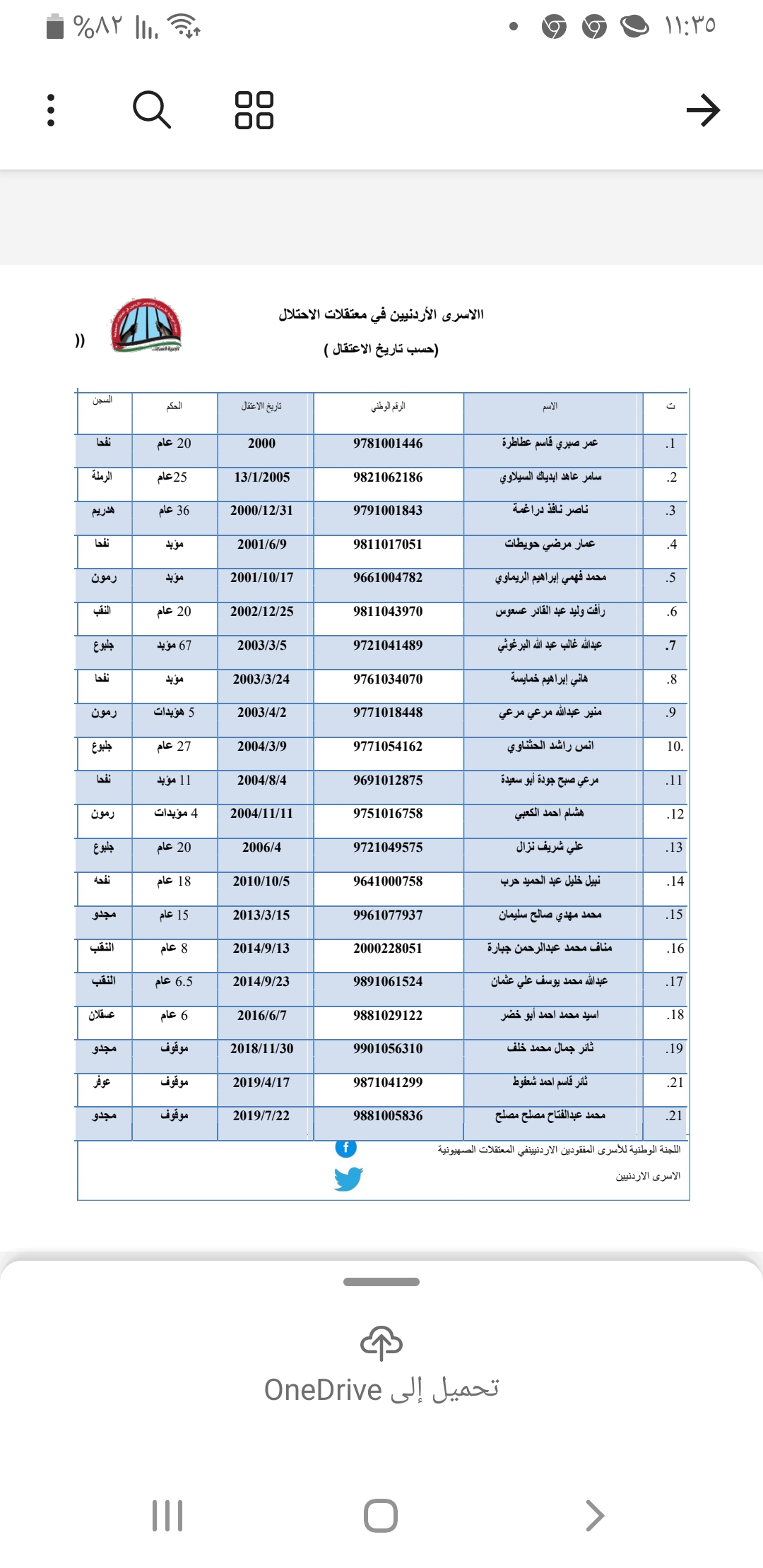 اعلن العضو في مجلس النواب الاردني خليل عطية اسماء نحو 19 اسيرا من الاردنيين في سجون الاحتلال والعدو الاسرائيلي طالبا بصورة مباشرة من قيادات حركة حماس بعد توجيه الشكر لها العمل على تامين الافراج عن هؤلاء الاسرى. من ابناء الشعب الاردني ضمن اي صفقة تقيمها او ترعاها حركة حماس لتبادل الاسرى مع العدو الاسرائيلي .