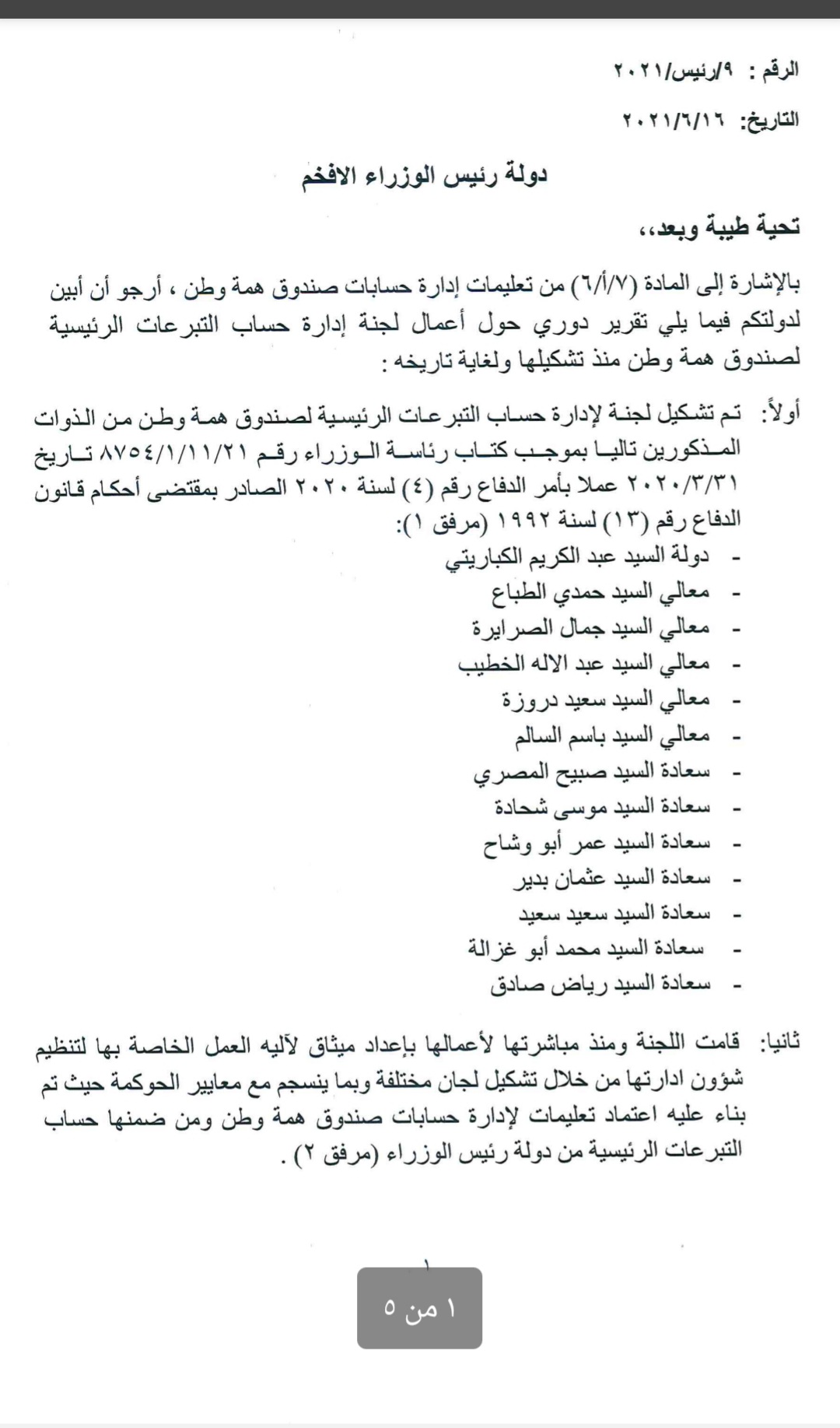 لجنة صندوق 《همة وطن》 تطلب إنهاء أعمالها بعد صرف كامل رصيد التبرعات 2021-06-17 / 11:44am المركب الاخباري