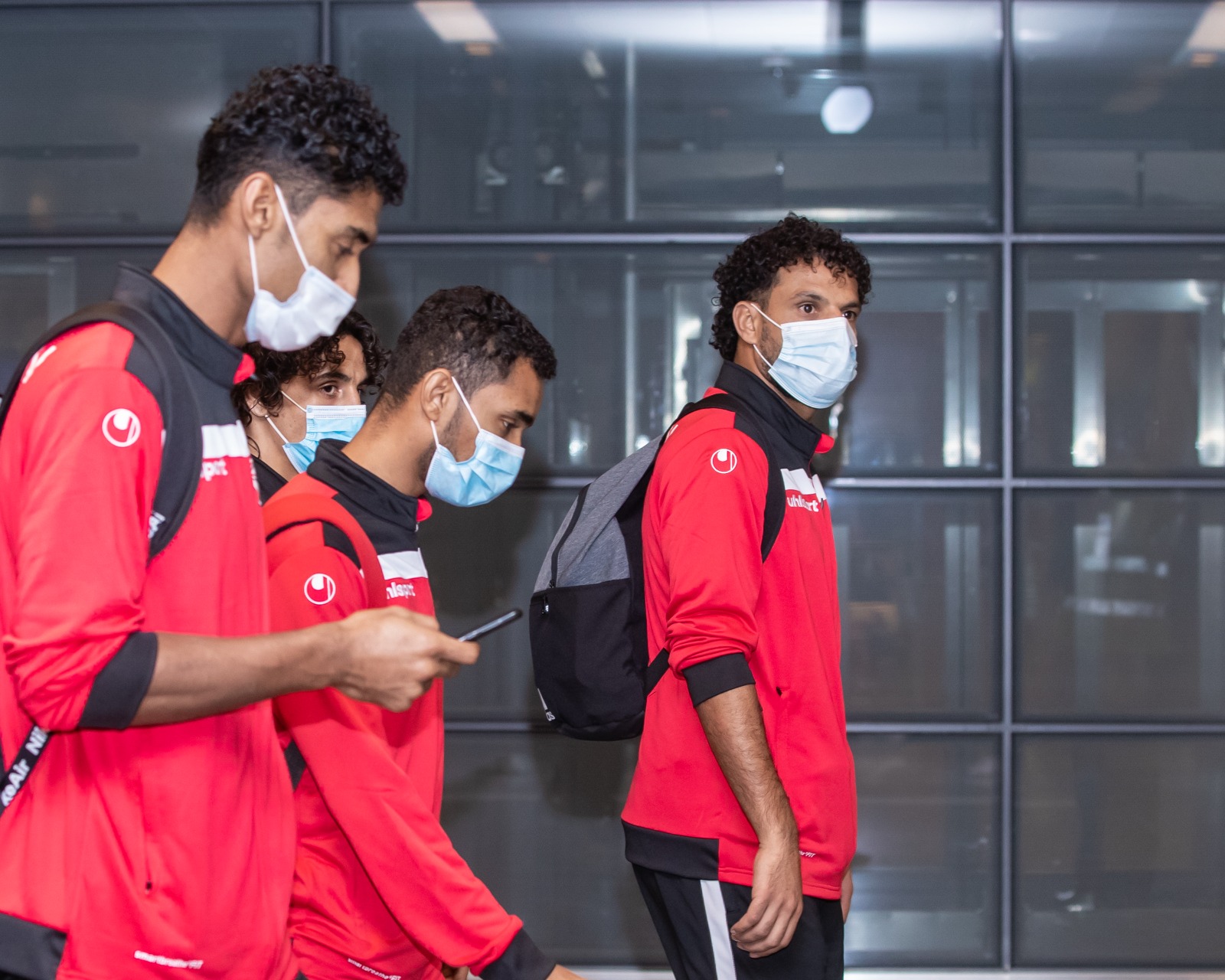 وخضعت البعثة فور الوصول إلى مسحة الكشف عن فيروس كورونا قبل الانتقال الى فندق الإقامة للدخول في فقاعة صحية تستمر حتى موعد المغادرة عقب المباراة، وفق تعليمات اللجنة المنظمة التي تحظر على المنتخبات التنقل سوى لخوض التدريبات والمباريات تطبيقا للبرتوكول الخاص بتصفيات كأس العرب.