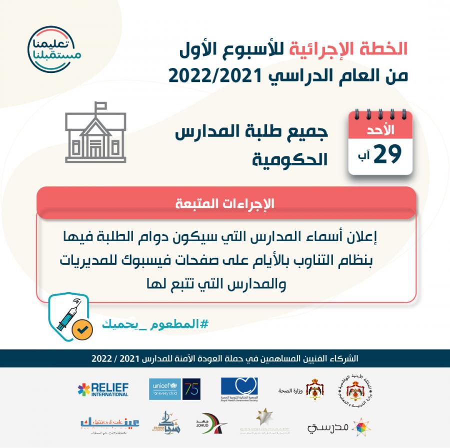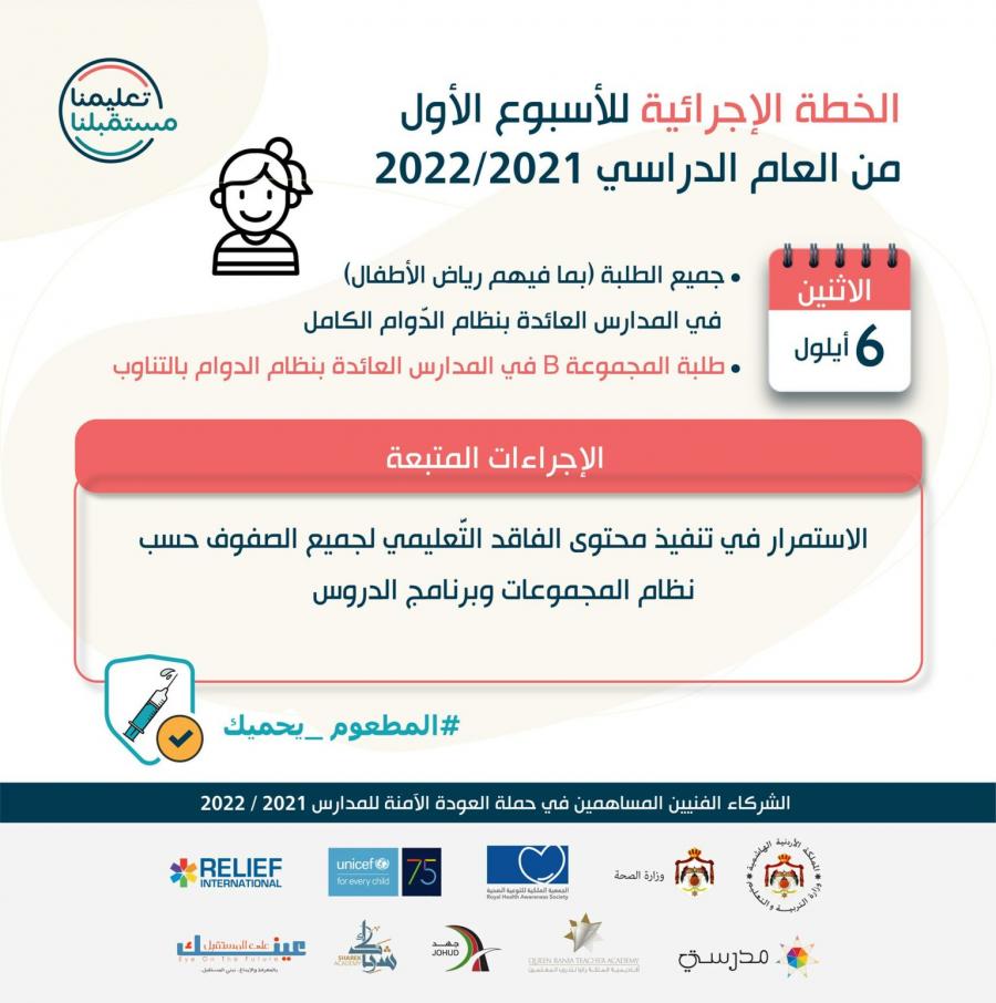 بالتفاصيل ... التربية تعلن شكل دوام المدارس من 1 حتى 21 أيلول