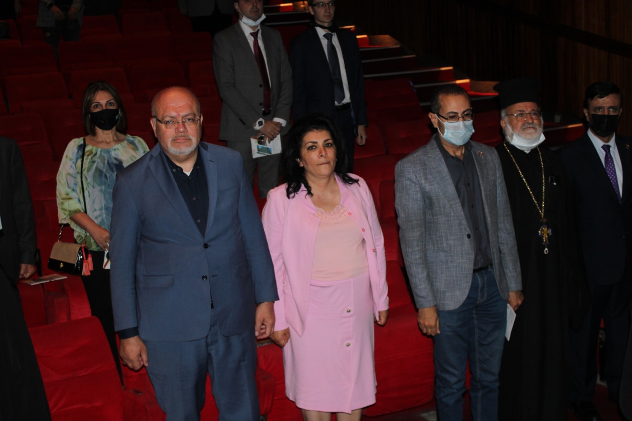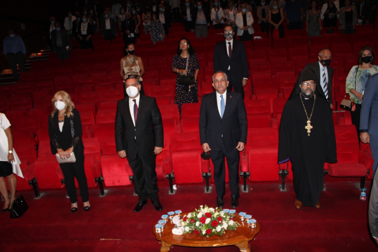 وفي الختام سلم المطران درعين تكريميين لكل من وزير الثقافة والسفير الارميني.