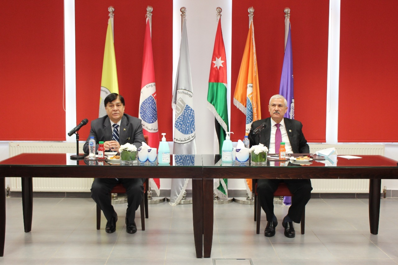 بحث رئيسُ جامعة الأميرة سميّة للتكنولوجيا، الأستاذ الدكتور مشهور الرفاعي، وسفيرُ جمهورِية باكِستان الإسْلَامِيّة في عمان، سجاد علي خان، سبل تعزيز تعاون الجامعة مع الجامعات الباكستانية.