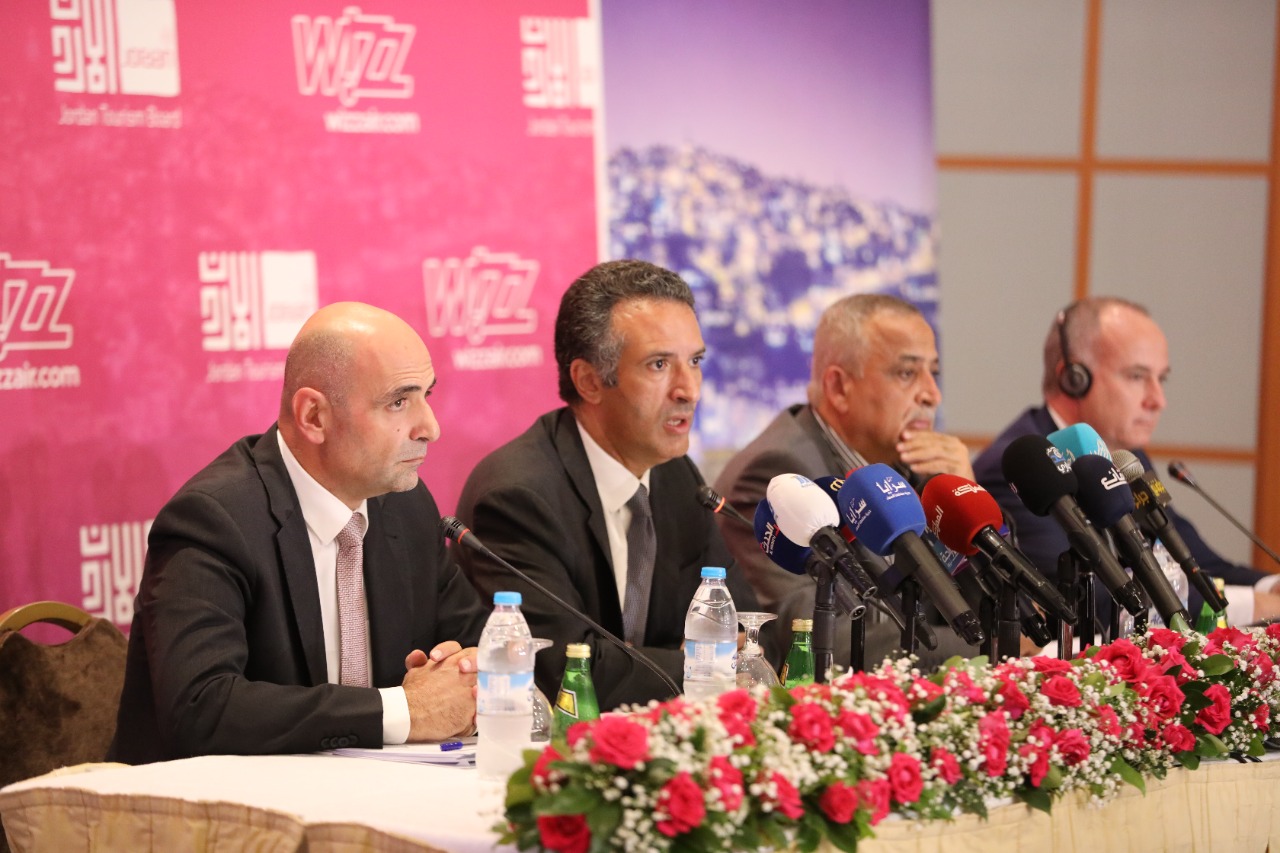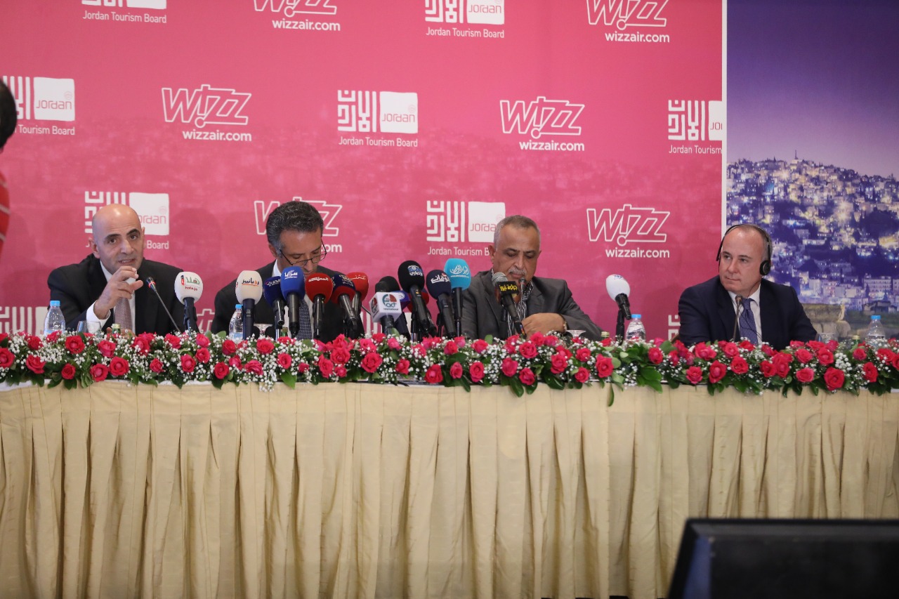 اعلن وزير السياحة والاثار نايف حميدي الفايز خلال مؤتمر صحفي اقيم اليوم ( الاحد ) ابرام اتفاقية طيران جديدة بين المملكة وشركة wizzair المنخفضة التكاليف العالمية، ودشنت خلاله الشركة 8 خطوط طيران جديدة للمملكة ، وجاء تدشين الاتفاقية بحضور مدير عام هيئة تنشيط السياحة الدكتور عبد الرزاق عربيات و ممثل شركة wizzair في المؤتمر السيد أوين جونز و شرحبيل ماضي ورئيس سلطة مفوضية العقبة الاقتصادية نايف البخيت نائب رئيس مجلس المفوضين مفوض السياحة في سلطة منطقة العقبة الاقتصادية الخاصة وعدد من ممثلي وسائل الاعلام .