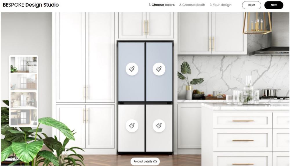 وتتيح لك هذه الأداة (المساعد الافتراضي) تصميم وشراء ثلاجتك الخاصة، واختيار اللون الذي يتناسب مع تصميمك الداخلي براحة وسهولة تامة، كما أنها تجعل أيضاً شراء ثلاجتك في منتهى السهولة. وإذا كنت بحاجة إلى مساعدة أو تود طرح أي أسئلة، فإن الموقع الإلكتروني يتميز أيضاً بوجود المساعد الافتراضي للحصول منه على الإجابات بصورة فورية. ويمكن للمستهلكين في الولايات المتحدة الارتقاء بالتجربة إلى آفاق أبعد من ذلك بكثير، بفضل وجود عدسات الواقع المعزز للبرنامج Bespoke AR Lens، وتكون متوافرة في تطبيق Snapchat، لتتيح لك استخدام الواقع المعزز لتحديد الثلاجة المصممة حسب الطلب بما يتناسب مع مطبخك بشكل أفضل.