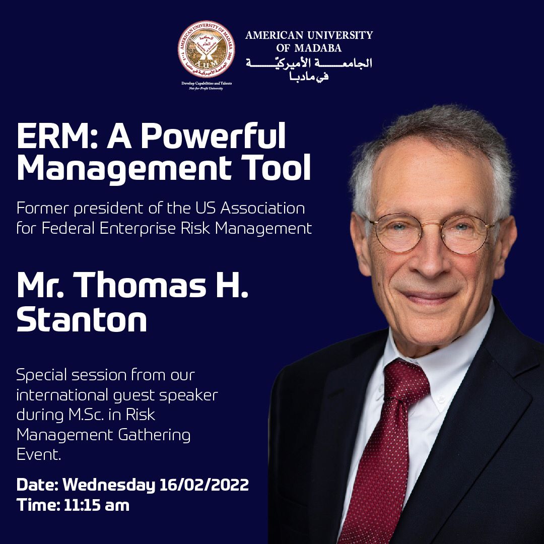وأثنى من الولايات المتحدة الأميركية البروفيسور ثوماس ستانتون ( Mr.Thomas H. Stanton ) الرئيس السابق للجمعية الأميركية لإدارة مخاطر المشاريع الفيدرالية على جهود الجامعة في طرح هذا البرنامج المتميز والمطلوب في سوق العمل عالميا. كما ألقى محاضرة من خلال برنامج زووم مؤكدا أن تخصص إدارة المخاطر يعنى بدراسة المخاطر وطرق التحكم بها، وإمكانية السيطرة عليها وتخفيض آثارها التي تواجه المؤسسات أو الشركات والبنوك ومن ثم دار نقاش بين الطلبة والهيئة التدريسية.