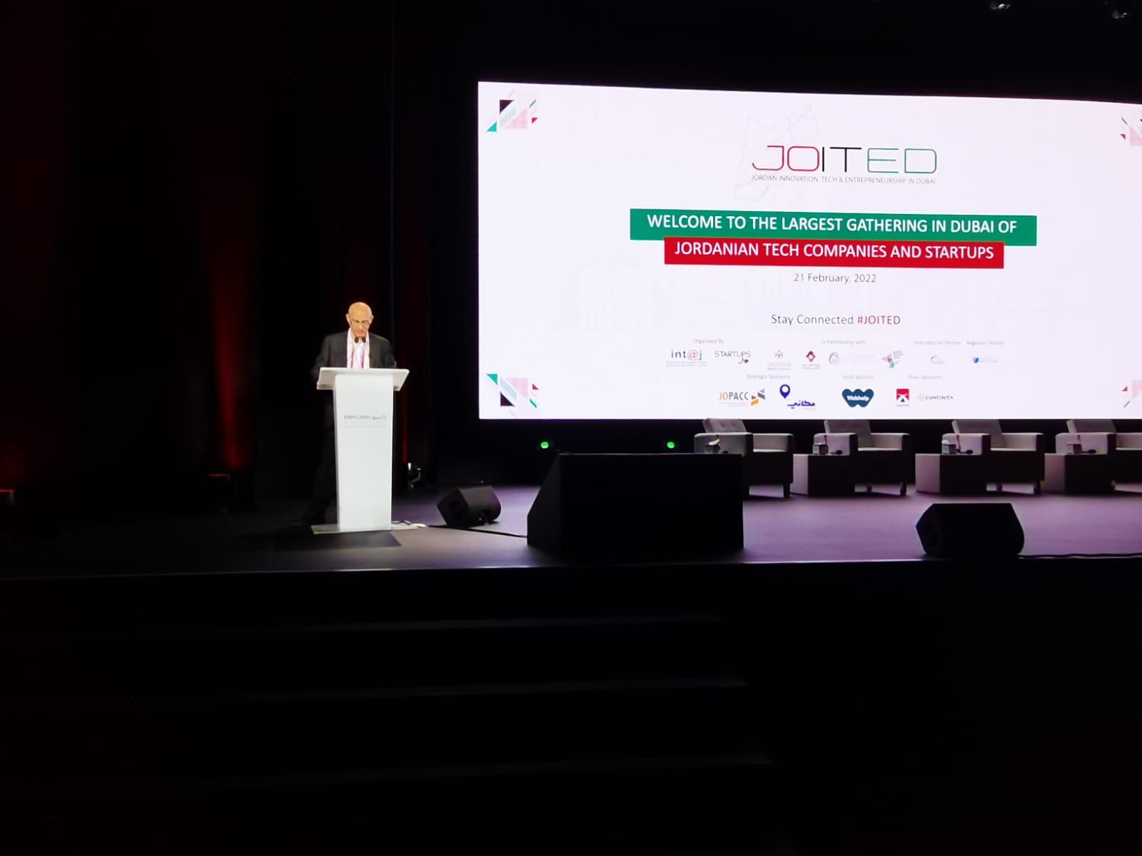 أمين عام وزارة الاستثمار والمفوض العام للجناح الأردني في اكسبو دبي 2020 زاهر قطارنة أكد خلال كلمته في افتتاح فعالية منتدى التكنولوجيا والابتكار والريادة الأردنية على أهمية هذه الفعالية وأن مشاركة وزارة الاستثمار في تنظيمها مع شركائها جاءت نظرا لأهمية قطاع تكنولوجيا المعلومات والريادة الأردنية وما يتمتع به من مزايا نسبية وتنافسية عالية إضافة الى ابراز إنجازات الشركات الأردنية العاملة في هذا القطاع.