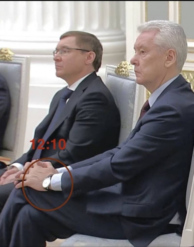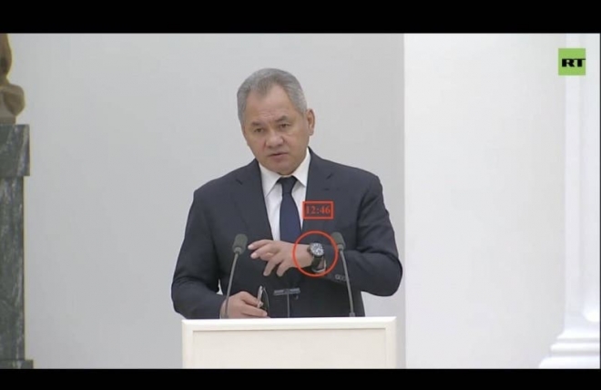 ورصدت الجهات التوقيت في ساعات اليد لكل من وزير الدفاع، سيرغي شويغو، ووزير الخارجية، سيرغي لافروف، كانت تشير إلى 11:45 دقيقة، وفي الجلسة نفسها ساعة عمدة موسكو تشير إلى 12:10 دقائق.