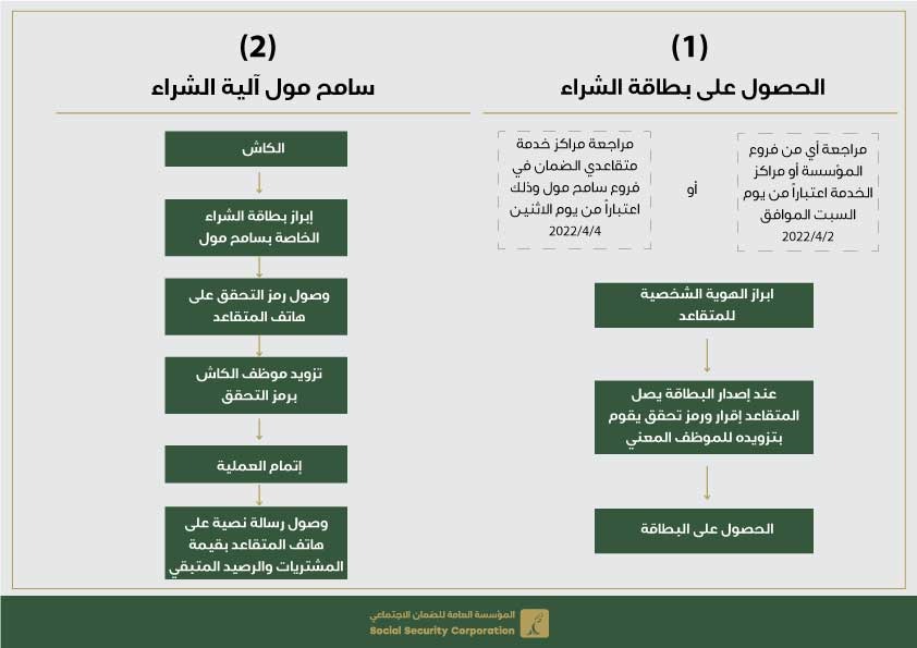 وأوضحت المؤسسة أنه يسمح للمتقاعدين والمستفيدين الاستفادة من البرنامج الجديد اعتباراً من يوم السبت القادم من خلال مراجعة أي فرع من فروع المؤسسة، وأنها ستقوم أيضاً واعتباراً من يوم الاثنين الموافق 4/4/2022 بتوفير البطاقات من خلال مراكز خدمة مؤقتة للمؤسسة في مختلف فروع سامح مول.