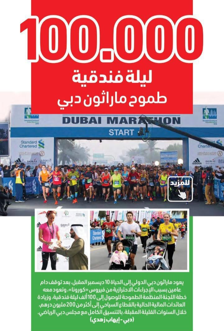 يعود ماراثون دبي الدولي إلى الحياة 10 ديسمبر المقبل، بعد توقف دام عامين بسبب الإجراءات الاحترازية من فيروس «كورونا»، وتعود معه خطة اللجنة المنظمة الطموحة للوصول إلى 100 ألف ليلة فندقية، وزيادة العائدات المالية الحالية بالقطاع السياحي إلى أكثر من 200 مليون درهم، خلال السنوات القليلة المقبلة، بالتنسيق الكامل مع مجلس دبي الرياضي.