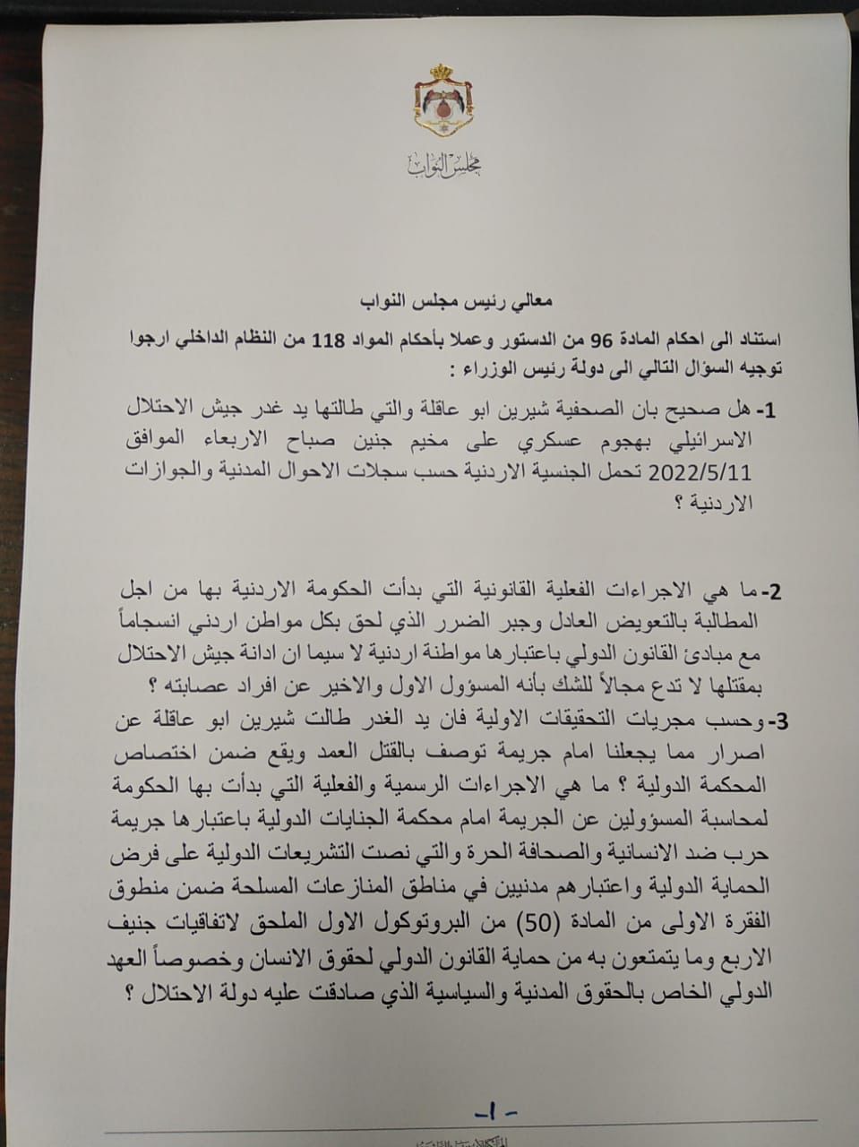 1- هل صحيح بان الصحفية شيرين ابو عاقلة والتي طالتها يد غدر جيش الاحتلال الاسرائيلي بهجوم عسكري على مخيم جنين صباح الاربعاء الموافق 11/5/2022 تحمل الجنسية الاردنية حسب سجلات الاحوال المدنية والجوازات الاردنية ؟