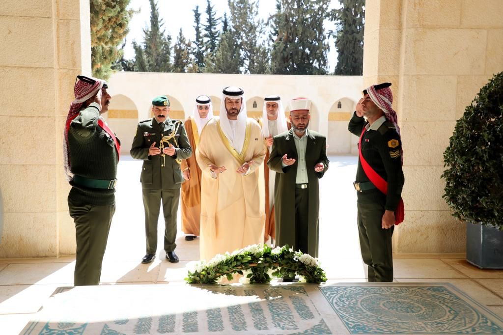 وتضمنت مراسم تقديم أوراق الاعتماد، لدى وصول معالي الشيخ قصر بسمان الزاهر، عزف الموسيقى السلام الملكي الأردني والسلام الوطني الإماراتي، وقام معاليه بوضع أكاليل الزهور على أضرحة المغفور لهم، بإذن الله، جلالة الملك الباني الحسين بن طلال، وجلالة الملك المؤسس عبدالله بن الحسين، وجلالة الملك طلال بن عبدالله، طيب الله ثراهم.