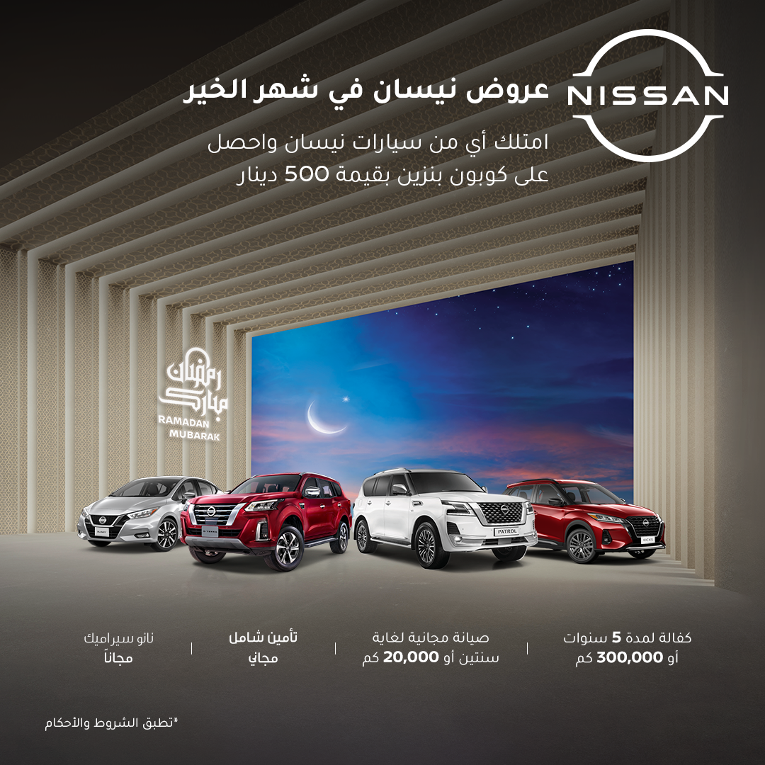 العروض سارية لأي فرد يتطلع إلى إصلاح سيارته أو شراء سيارة نيسان جديدة خلال فترة رمضان. تشجع نيسان الأردن عملائها على الاستفادة من هذه العروض الحصرية خلال فترة الشهر الكريم.