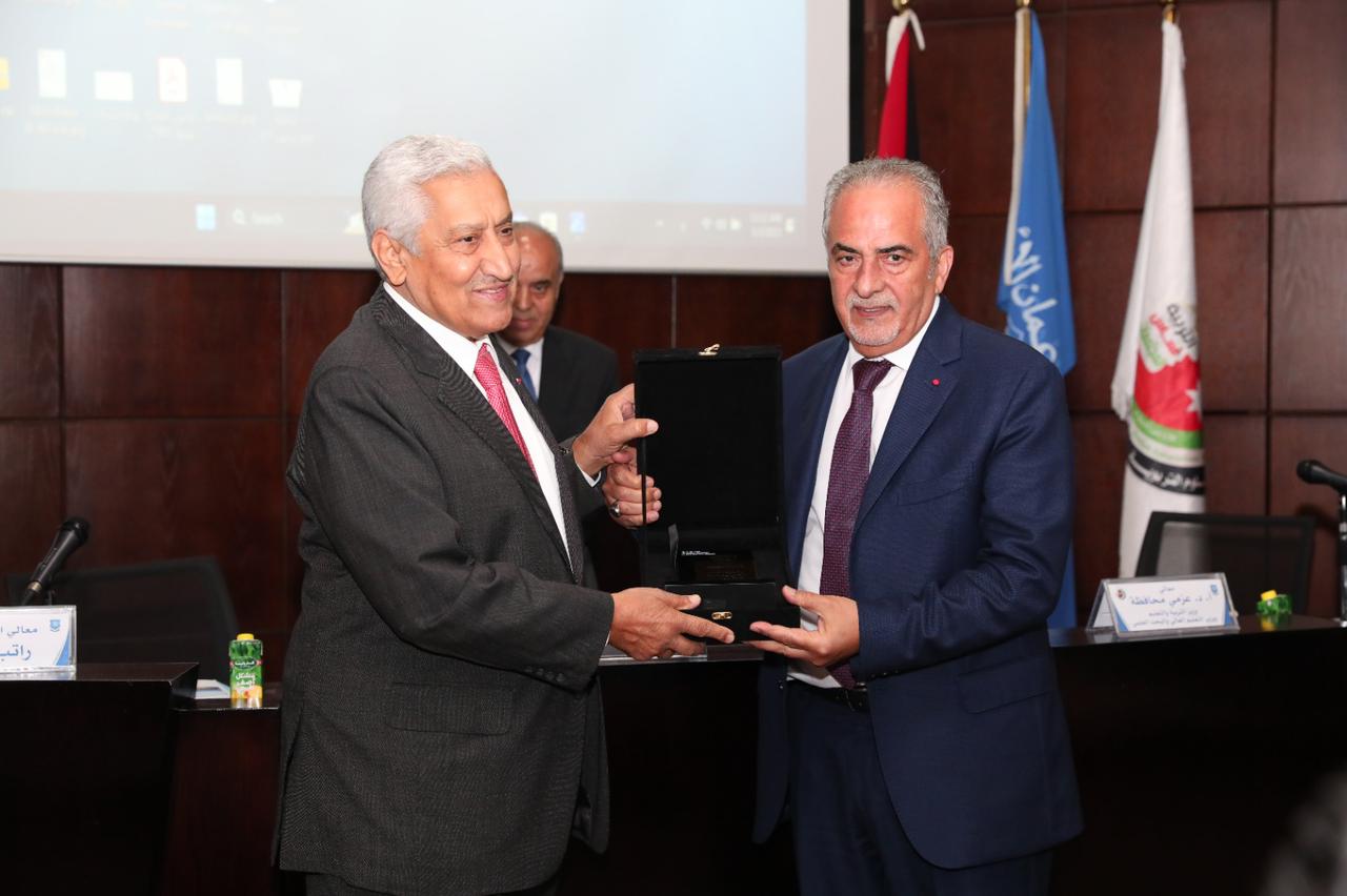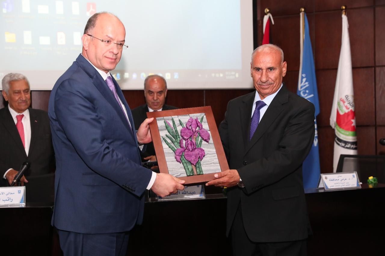 من جانبه قدم معالي وزير التعليم العالي والبحث العلمي الأستاذ الدكتور عزمي محافظة عرضاً عن أهم التحديات التي تواجه التعليم العالي في الاردن والوطن العربي والعالم بعدما عرض الواقع الحالي، كما أشار معالي الوزير لنقاط القوة التي يرى أنه يجب استغلالها والبناء عليها.