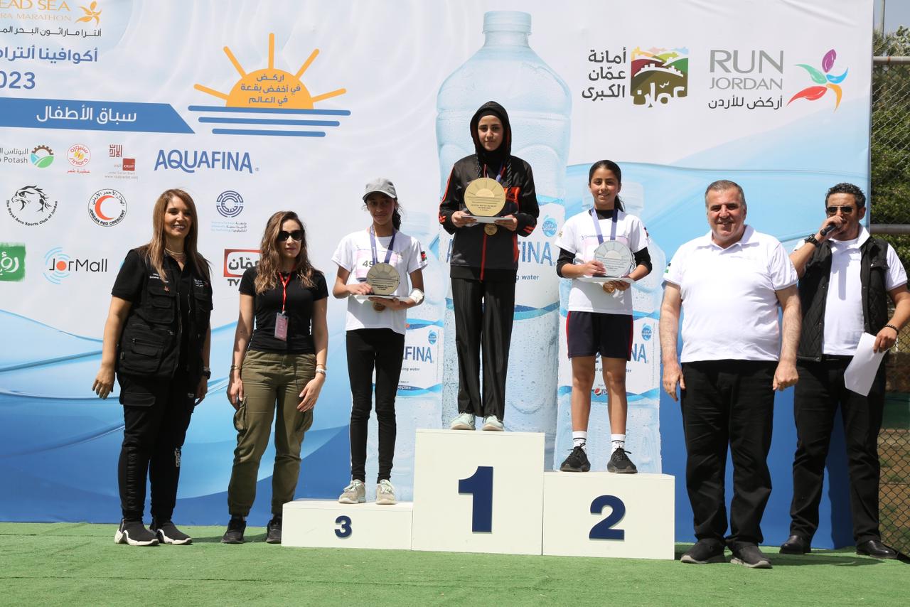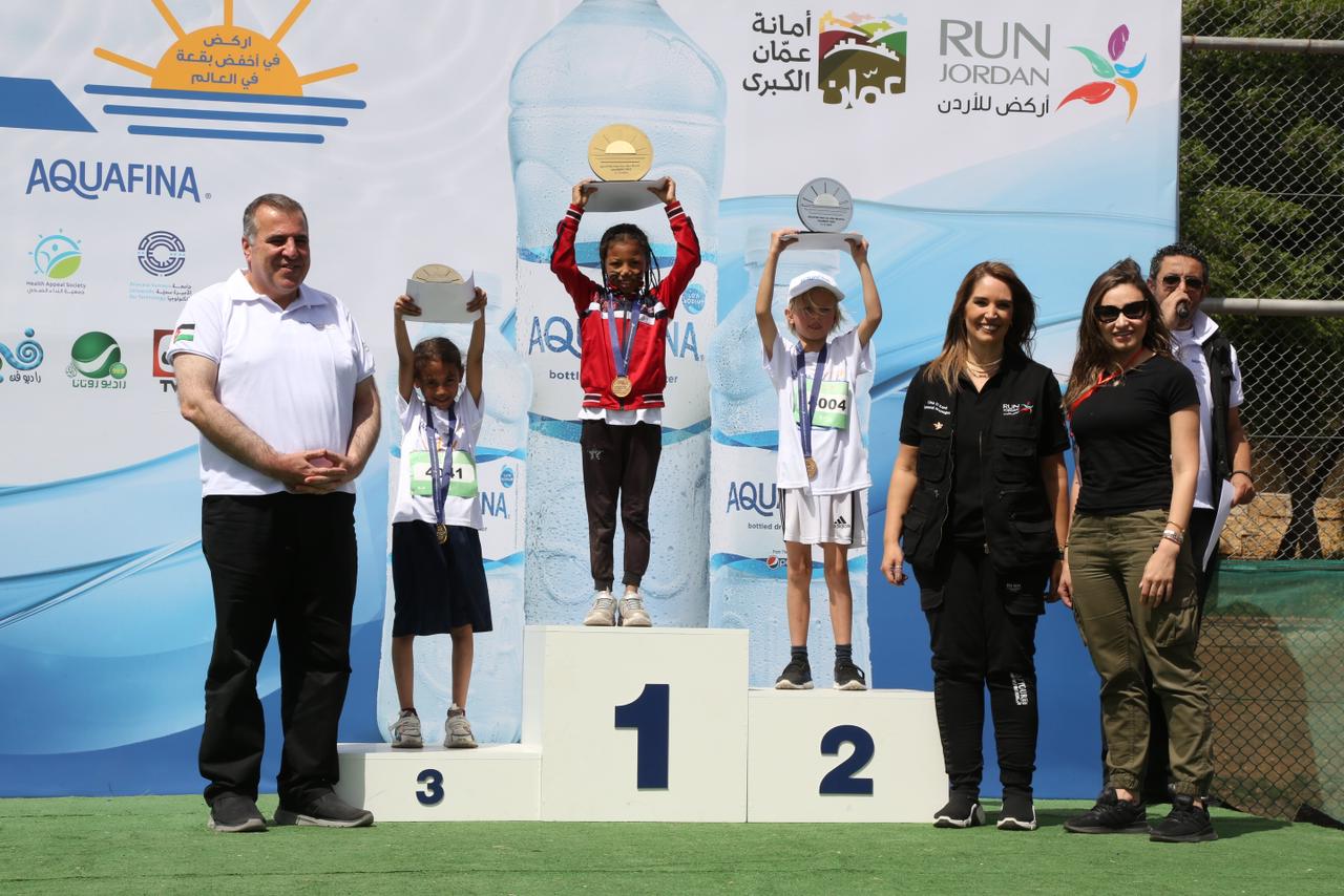 واحتفالاً بنتائج السباق توّج السيد أحمد ملكاوي مدير المدينة في أمانة عمان الكبرى وعضو مجلس إدارة الجمعية الأردنية للماراثونات مندوبا عن سمو الأمير فراس بن رعد، ومدير عام الجمعية الأردنية للماراثونات الآنسة لينا الكرد جميع الفائزين والآنسة رؤى زيدان مديرة التسويق في شركة "بيبسي الأردن. وذلك بتسليم الجوائز العينية لأصحاب المراكز الثلاثة الأولى من كل فئة مقدمة من شركة أكوافينا؛ حيث تم تقسيم الفئات المشاركة إلى ثلاث فئات؛ ضمت الأولى الأطفال من عمر 6 إلى 8 سنوات، والثانية من 9 إلى 11 سنة، والثالثة من 12 إلى 14 سنة.