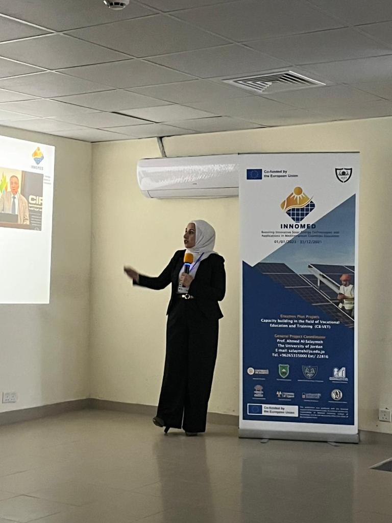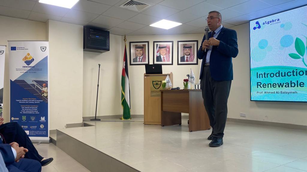 وشملت الفعاليات على القاء عدد من المحاضرات العملية والنظرية حيث شارك في المحاضرات حتى يوم امس كل من : الأستاذ الدكتور أحمد السلايمة حيث قدم من خلال محاضرة تدريبية عن الطاقة المتجددة ، وعن طاقة الرياح الدكتور معتز حمدان ، وعن الطاقة الكهروضوئية قدمها الدكتور حسين الداوود ، وعن الطاقة الحرارية الجوفية و الطاقة الكهرومائية الدكتور عبد الرحمن العزوني ، كما تشعبت المحاضرات إلى مجموعة من مواضيع متعلقة بالطاقة وعن الطاقة الشمسية المهندس بلال منذر ، وعن الطاقة الرياح المهندس علاء بني عيسى ، والطاقة الحيوية للمهندسة إسراء صب لبن ، والطاقة الشمسية الحرارية المهندس معاذ مقابلة و المهندسة خلود حجازي ، وتخزين الطاقة للمهندسة هبة أبو تايه ، ومكونات سوق الطاقة الكهربائية للمهندسة سارة قطيشات) .