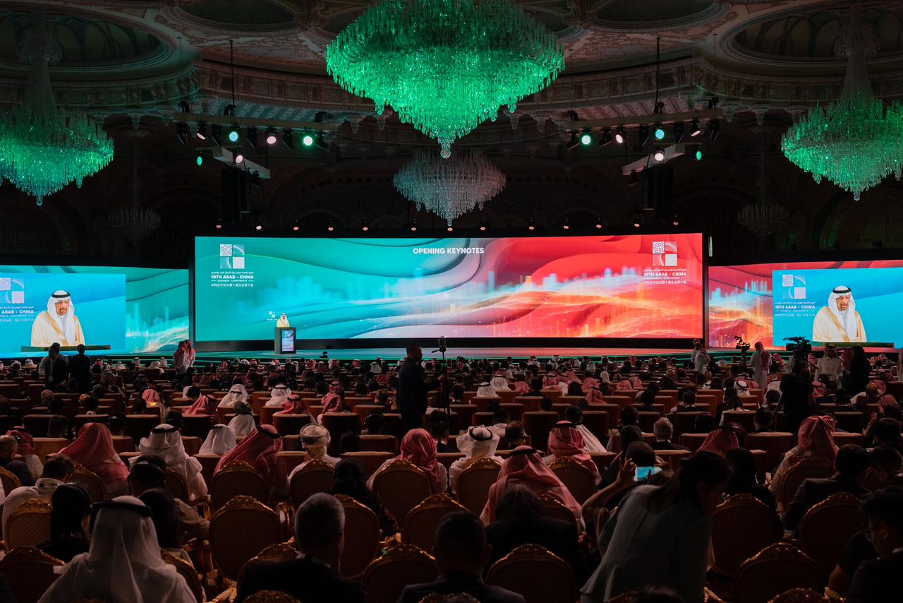 حفل افتتاح المؤتمر شهد أيضاً كلمة ترحيبية لمعالي وزير الاستثمار المهندس خالد الفالح، حيث عبر معاليه عن شكره وامتنانه لسمو ولي العهد لرعاية هذا الحدث الكبير. ورحب معالي المهندس الفالح بمشاركة الصين في هذه النهضة والتي تعد شاملة باتجاه النمو والتوسع، وتخلق فرصًا هائلة للنهضة القادمة، وللتعاون الاقتصادي والتجاري والاستثماري، وسنعمل معها لاغتنام الفرص الكبيرة المتاحة أمامنا، لأننا نؤمن بالتكامل الواسع النطاق بين اقتصاداتنا. وبين معاليه أن صادرات الطاقة من العالم العربي أسهمت في دفع عجلة التنمية الصناعية في الصين، وفي المقابل وصلت السلع المصنعة في الصين إلى كل منزلٍ ومكتبٍ ومصنعٍ في البلاد العربية.