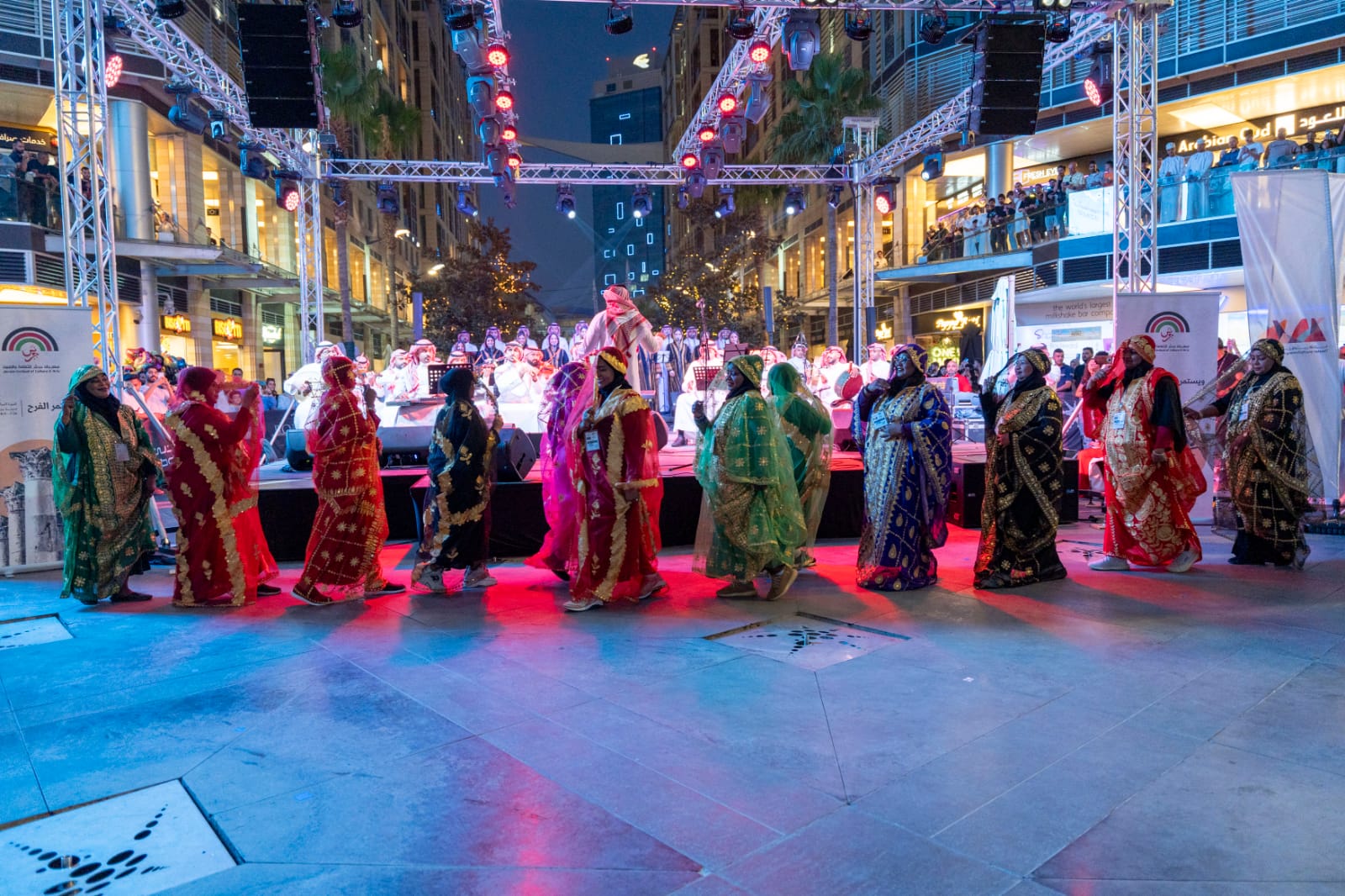 وشاركت فرق أدائية رجالية ونسائية في الحفلة، وقدمت فنون السامري، والخطوة، والخبيتي، والينبعاوي، لتختتم الأمسية بتكريم للمشاركين السعوديين في المهرجان، تسلمه رئيس الوفد السعودي المشارك في مهرجان جرش، الرئيس التنفيذي لهيئة المسرح والفنون الأدائية سلطان البازعي.