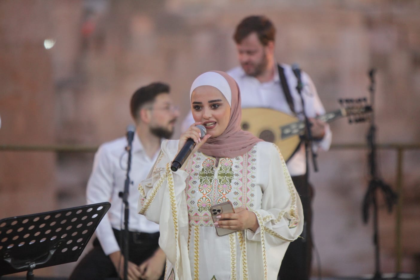 وعلى وقع موسيقى التراث بدأت الفرقة بعزف مقطوعات من أغنيات التراث العربي مثل وين على رام الله وغيرها، وانتقلت الفرقة بعزفها المحترف على الآلات الموسيقية لتقديم مقاطع مميزة أمتعت الحضور من موسيقى تراث بلاد الشام والموشحات الأندلسية من خلال العزف على العود والأورغ والناي والدمج المحترف بينهم.