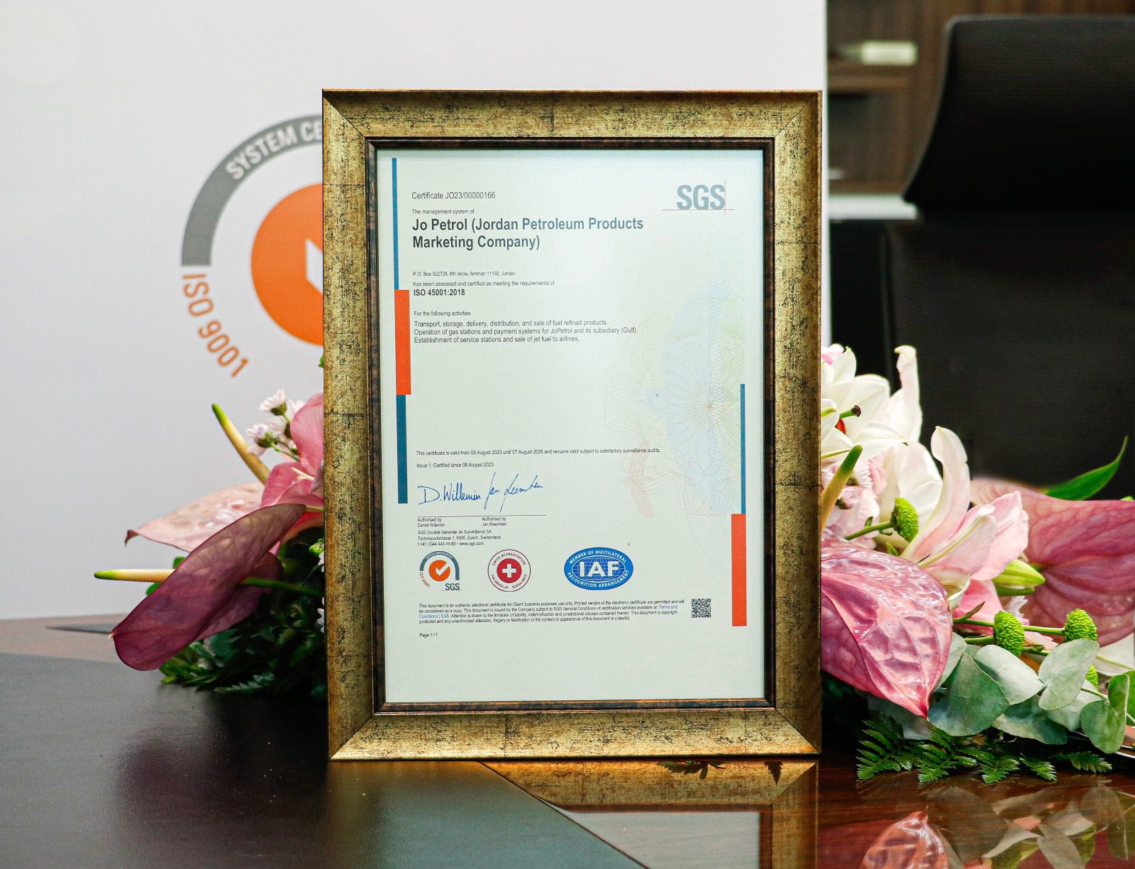 حصلت شركة تسويق المنتجات البترولية الأردنية "جوبترول" على شهادات الاعتماد الدولية الأيزو