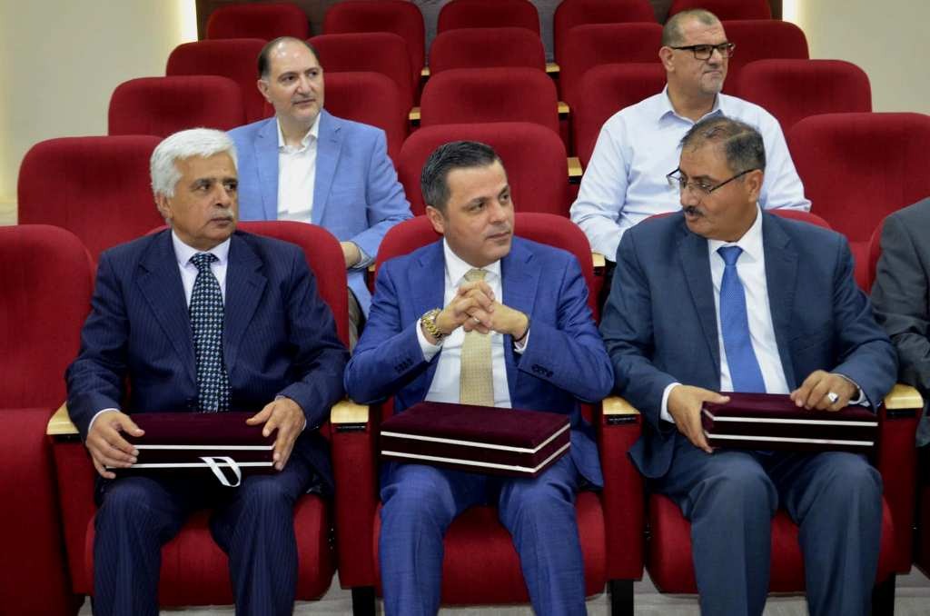 • من جهته شكر رئيس الجامعة جهود العمداء السابقين لخدمتهم، مؤكداً أنهم ساهموا في الانجازات التي حققتها الجامعة والتي تسجل للجميع من أعضاء الهيئة التدريسية والعاملين فيها.