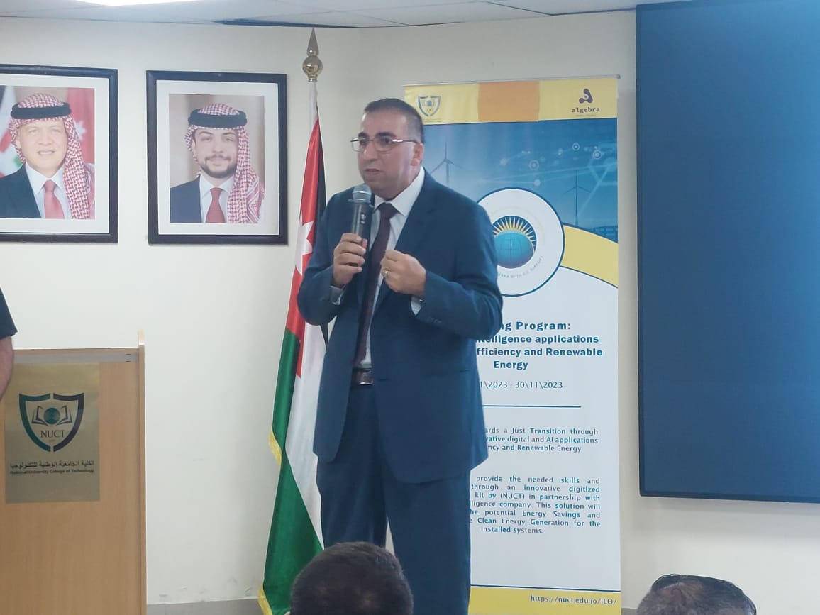 وفي ختام الحفل قام السيد ابراهيم الساكت والدكتور عميد الكلية والسيد احمد الطوافشة مدير عام شركة الجبرا بتوزيع الشهادات على خريجي دورة برنامج تطوير المهارات والمسوم بــ "تطبيقات الذكاء الصناعي في كفاءة الطاقة والطاقة المتجدده" التي نظمتها الكلية في حرمها بالتعاون مع الشريك الاستراتيجي شركة الجبرا وبدعم وتمويل من منظمة العمل الدولية .