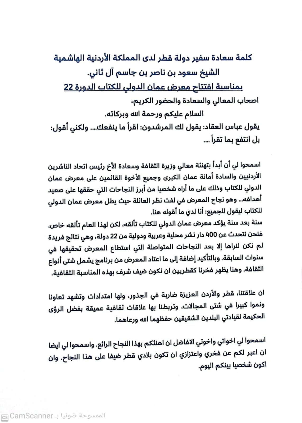 كلمة سفير دولة قطر الشيخ سعود بن ناصر بن جاسم ال الثاني