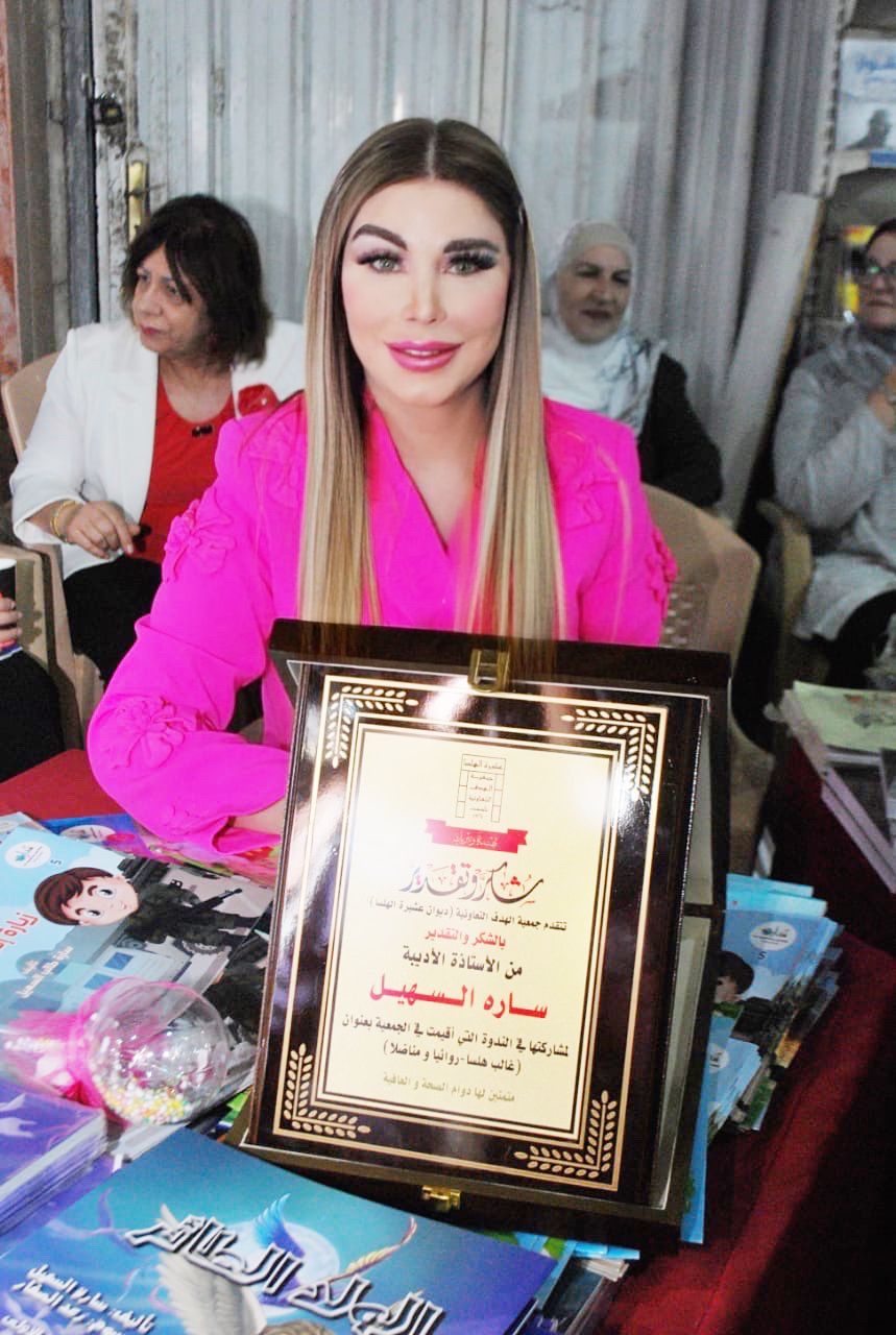 وقد حضر حفل التوقيع الذي تم في جناح اتحاد الكتاب والأدباء الأردنيين رئيس الاتحاد الشاعر عليان العدوان الذي سلم الكاتبة والباحثة سارة طالب السهيل تكريم الاتحاد على مجمل أعمالها الأدبية التي تصب في خدمة الطفولة والمجتمع.