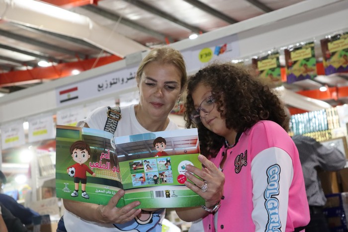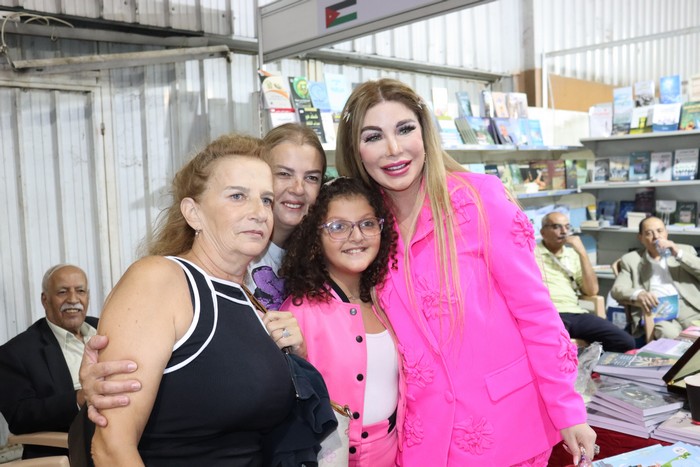 والأصدقاء من الصحفيين ورواد المعرض من الجمهور الكبار والصغار وأصدقاء الكاتبة.