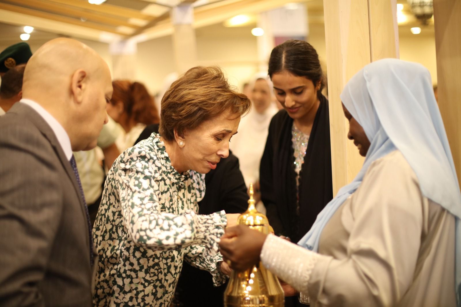 وقد رحبت الشيخة سلامة بنت طحنون بن محمد آل نهيان حرم معالي السفير، بسمو الاميرة خلال تشريفها جناح الدولة في البازار ، كما شكرت الشيخة جميع الشركاء الإستراتيجيين المساهمين في المعرض وهم الاتحاد النسائي العام وهيئة الهلال الأحمر الإماراتي ( الغدير ) و مؤسسة خليفة بن زايد للأعمال الإنسانية و شركة الفطيم ( كارفور ) .
