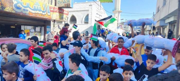 مسيرة 《أكفان》تضامنا مع غزة في مخيم إربد