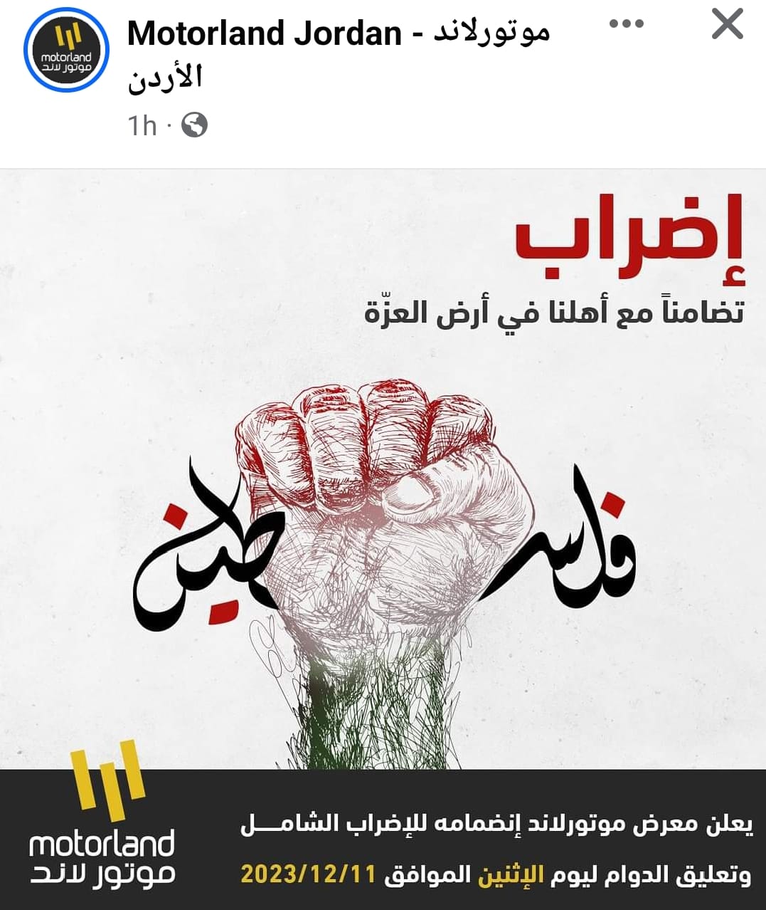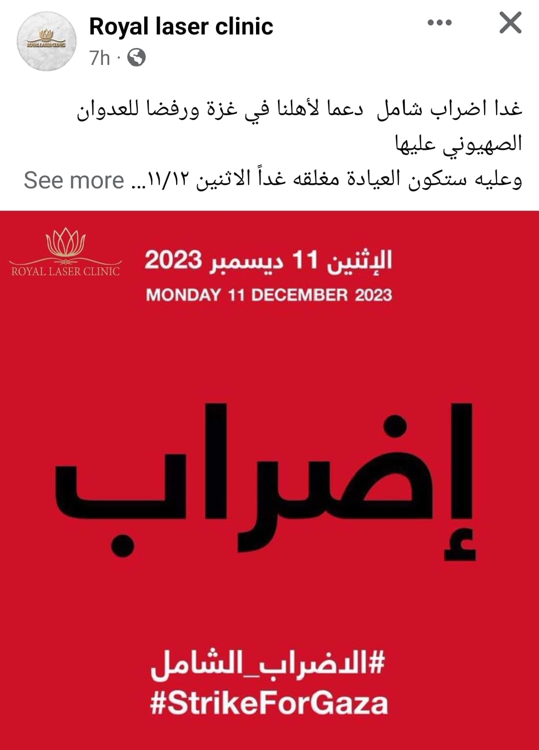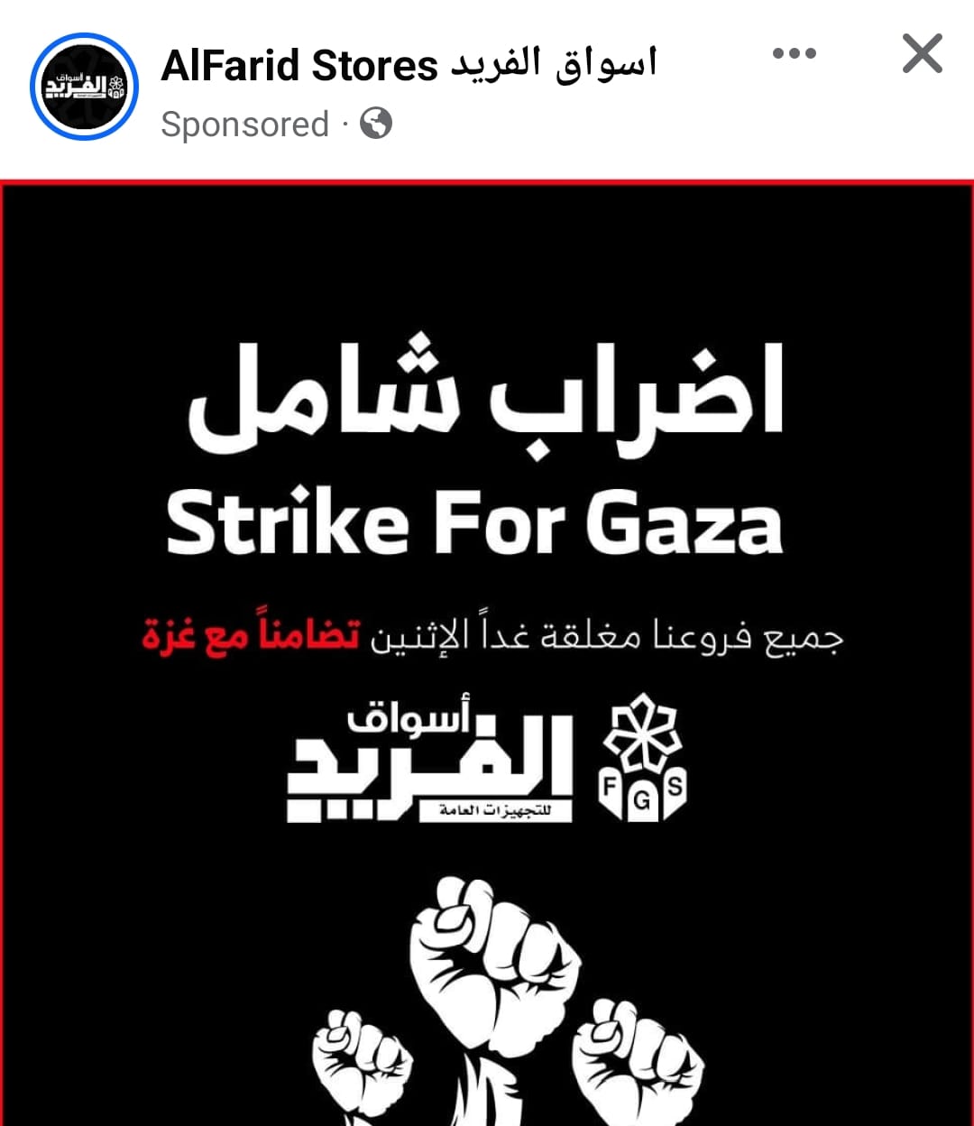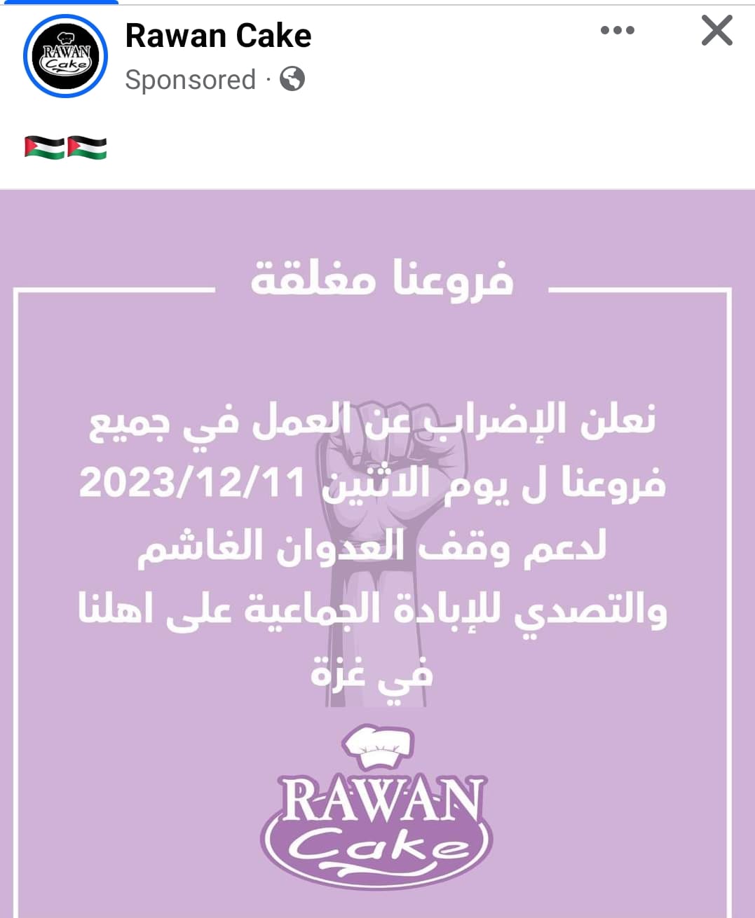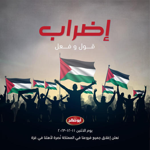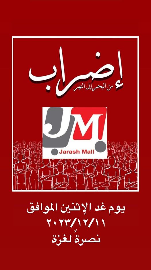 أعلنت عدة قطاعات تجارية ومنشآت ومؤسسات؛ مشاركتها في الإضراب العام عن العمل، اليوم الاثنين، تضامنا مع قطاع غزة؛ وتنديدا بالإبادة الجماعية التي يتعرّض لها الفلسطينيون هناك