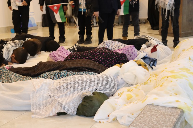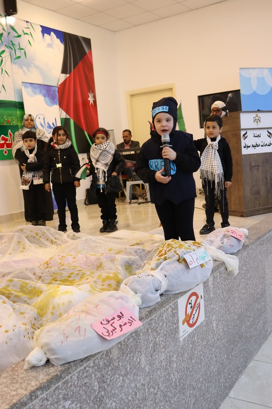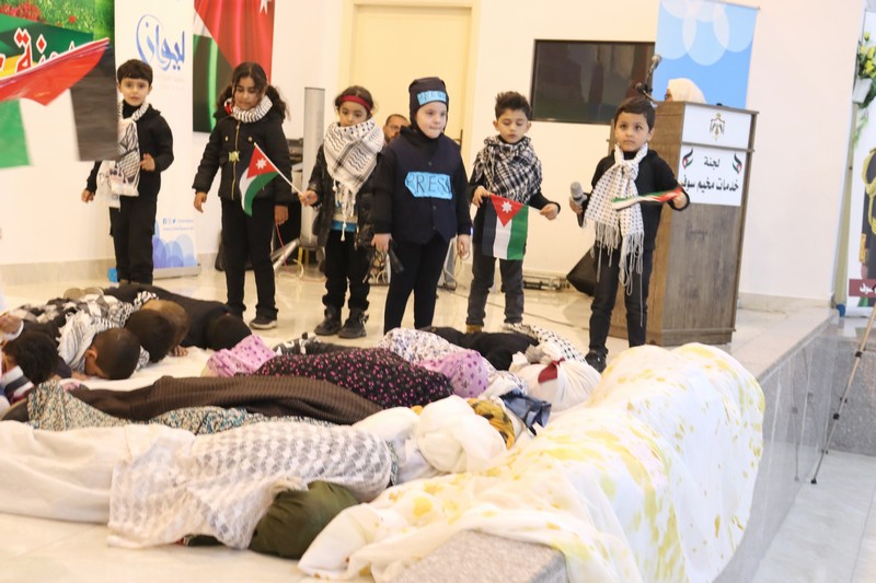 وتضمن الحفل والذي اجري في حضور لافت من جميع المخيمات المشاركة بالمشروع مجموعة من الفقرات والتي تمت تحت سياق دعم الصمود والتضامن مع غزة وثثمين المساعي الاردنية الرسمية وغير الرسمية في هذا الاطارحيث شارك اطفال روضة السندباد في مركز البرامج النسائية مخيم سوف لوحة رائعة عن التغريبة الغزاوية وفقرات شعرية
