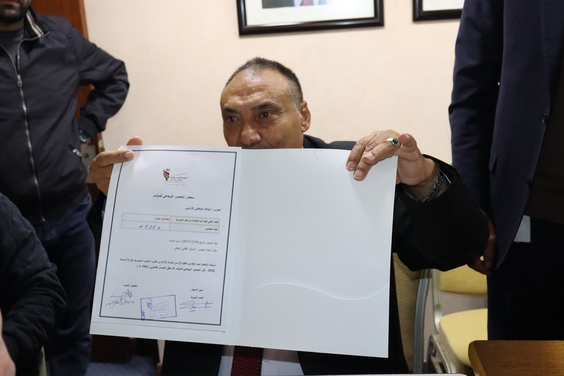 فوز سعاده المحامي مازن الضلاعين الجوازمه كامين عام للحزب الوفاء الوطني الاردني