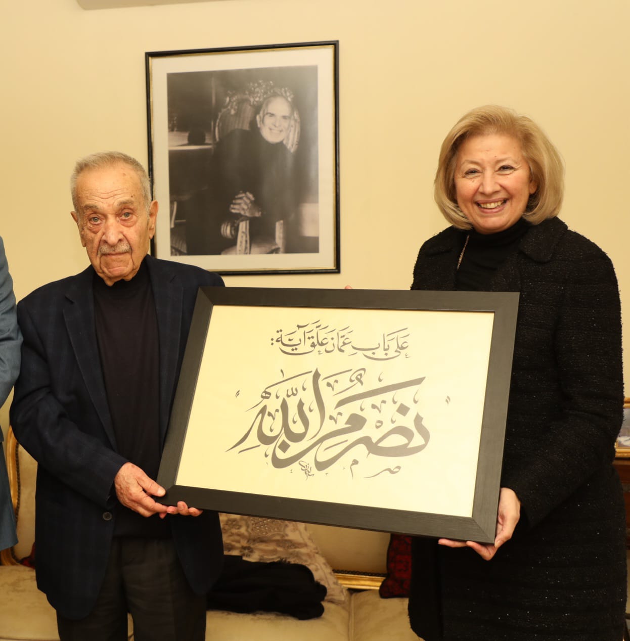 وفي نهاية الزيارة أهدت وزيرة الثقافة للشاعر حيدر محمود لوحة بالخط العربي من مقتنيات الوزارة، كُتب عليها "على باب عمان علّق آية (نصرٌ من الله)، كمقطع من إحدى قصائد الشاعر الوطنية بعيد الاستقلال.
