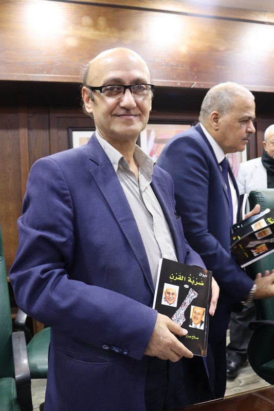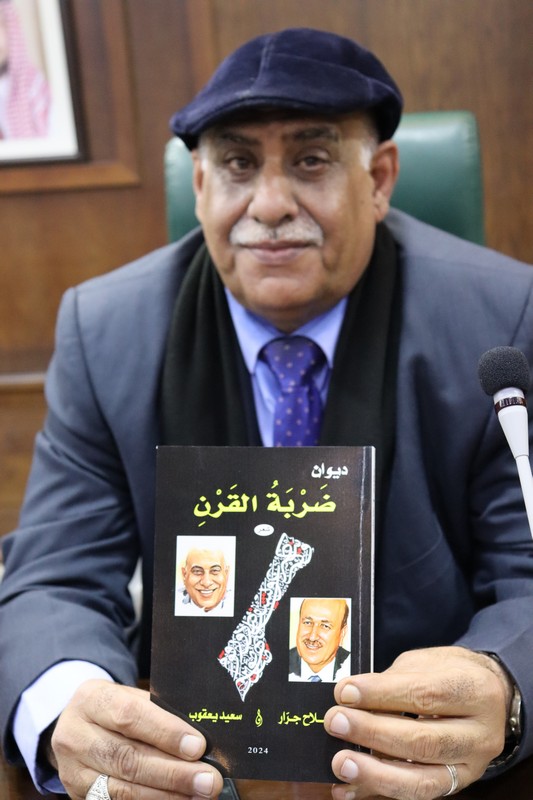 أشهر الكاتبان الدكتور صلاح جرار وسعيد يعقوب، في دائرة المكتبة الوطنية بعمان، ديوانهما الشعري المشترك "ضربة القرن"، بحضور حشد من المهتمين والأكاديميين.